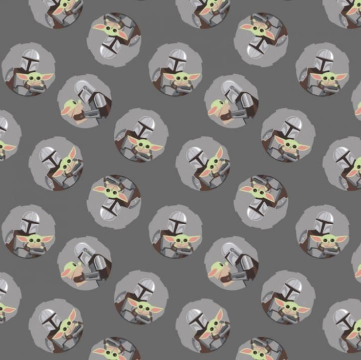 Star Wars Grey Mandalorian & Baby Yoda Toss 100% Cotton Fabric Fat Quarter-18"x22" Half Yard-18"x44" 1 Yard-36"x44" Content: 100% Cotton Vendor: Camelot Care: Machine wash gentle cold, non-chlorine bleach, tumble dry low, warm iron. Condition: New