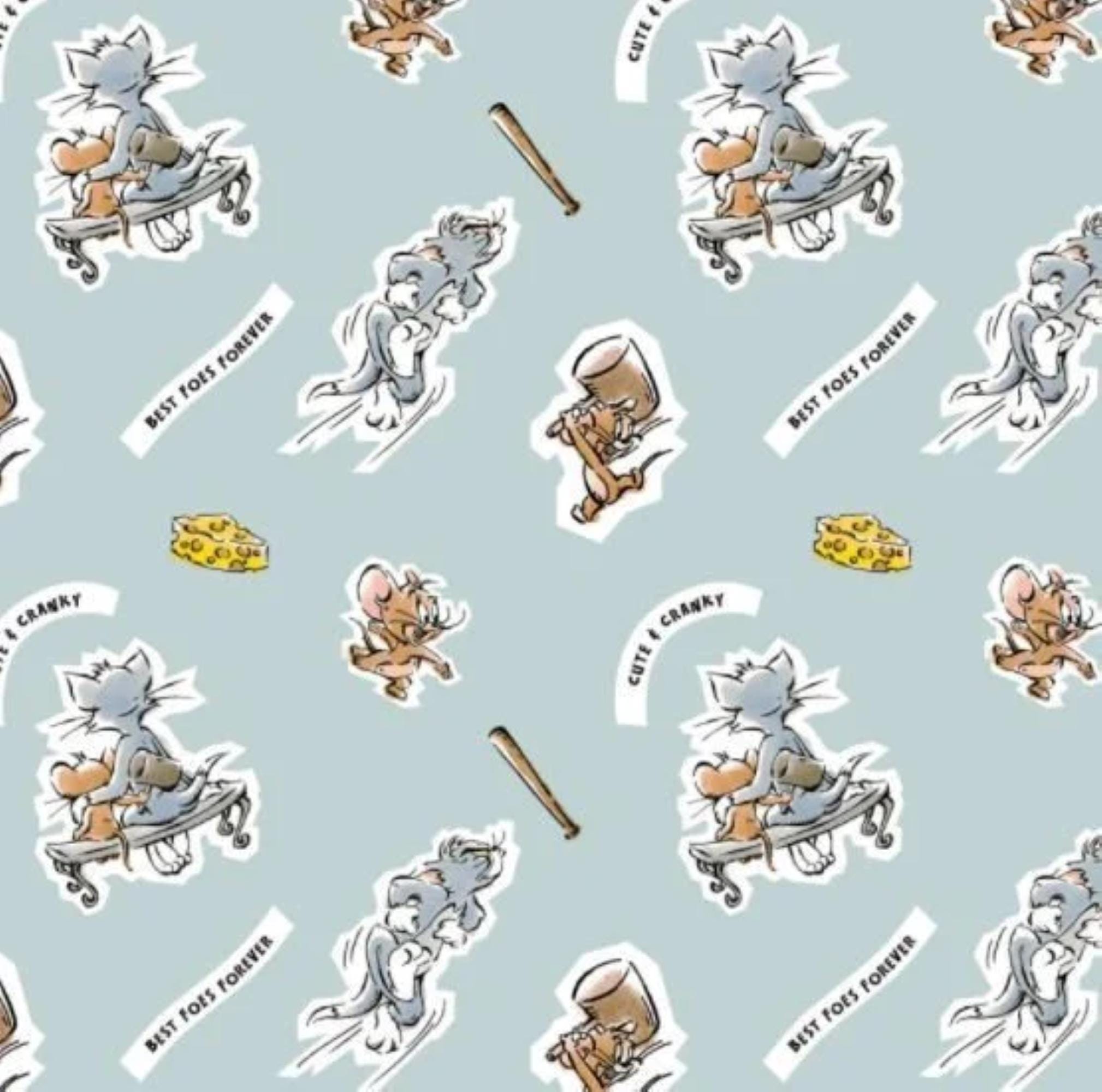 Bring playful fun to your sewing projects with this Tom & Jerry Foes Forever Light Blue Print 100% Cotton Fabric by Camelot Fabrics. This officially licensed Warner Brothers fabric features Tom and Jerry in a lively “Foes Forever” design on a light blue background, making it perfect for quilts, décor, children’s apparel, and creative crafts.