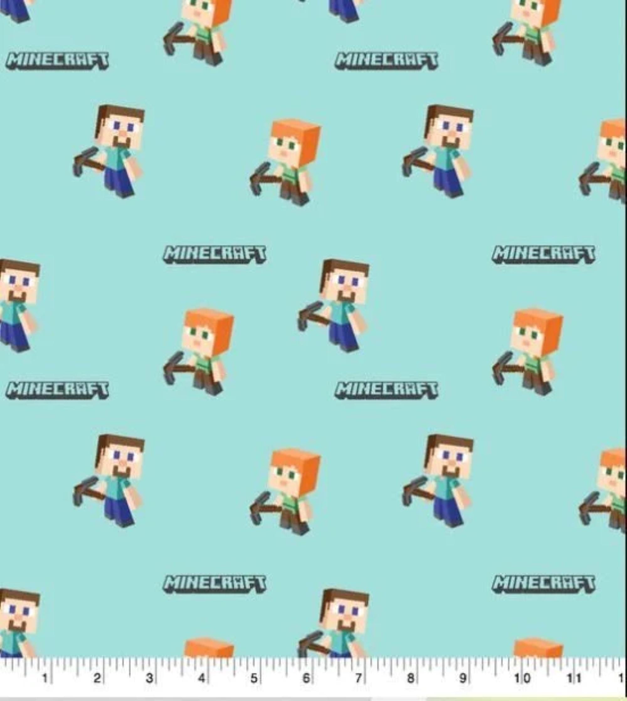 Craft something epic with this Mojang Minecraft Steve Alex Toss 100% Cotton Fabric. This officially licensed Minecraft fabric features Steve, Alex, and pixelated gaming icons tossed across the design, making it perfect for quilts, apparel accents, crafts, décor, and gifts for gamers.