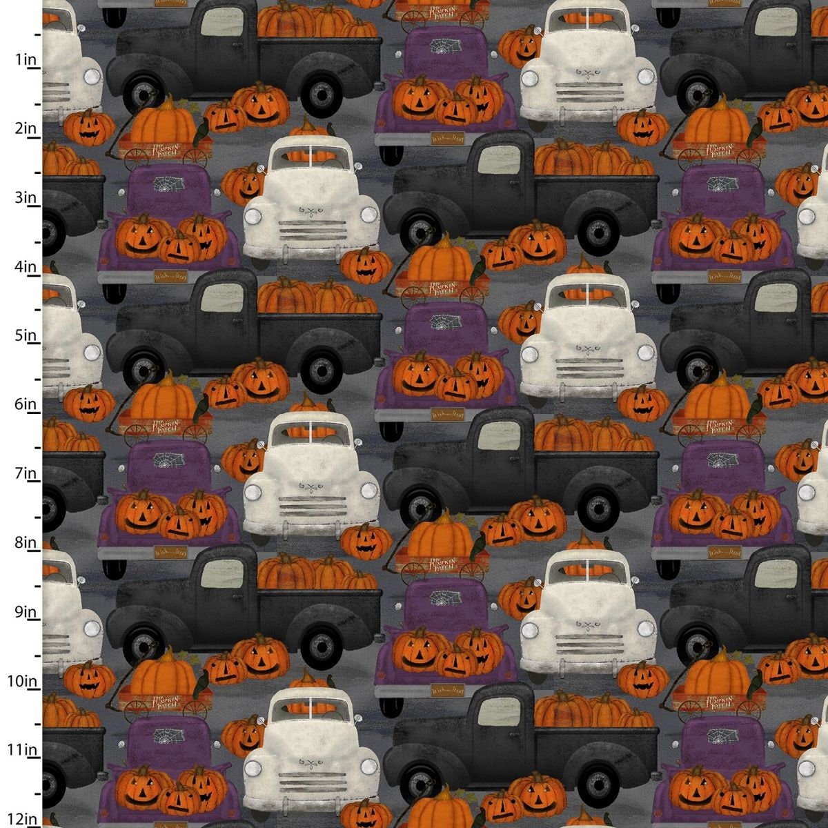 3 Wishes Spooky Night Pumpkin Patch Cotton Fabric Fat Quarter- 18"x21" -precut Half Yard-18"x43"-precut 1 Yard-36"x43"; sold in one continuous cut. Vendor: 3 Wishes Designer: Beth Albert Care: Machine wash warm, tumble dry low. Cool iron, if necessary. Condition: New