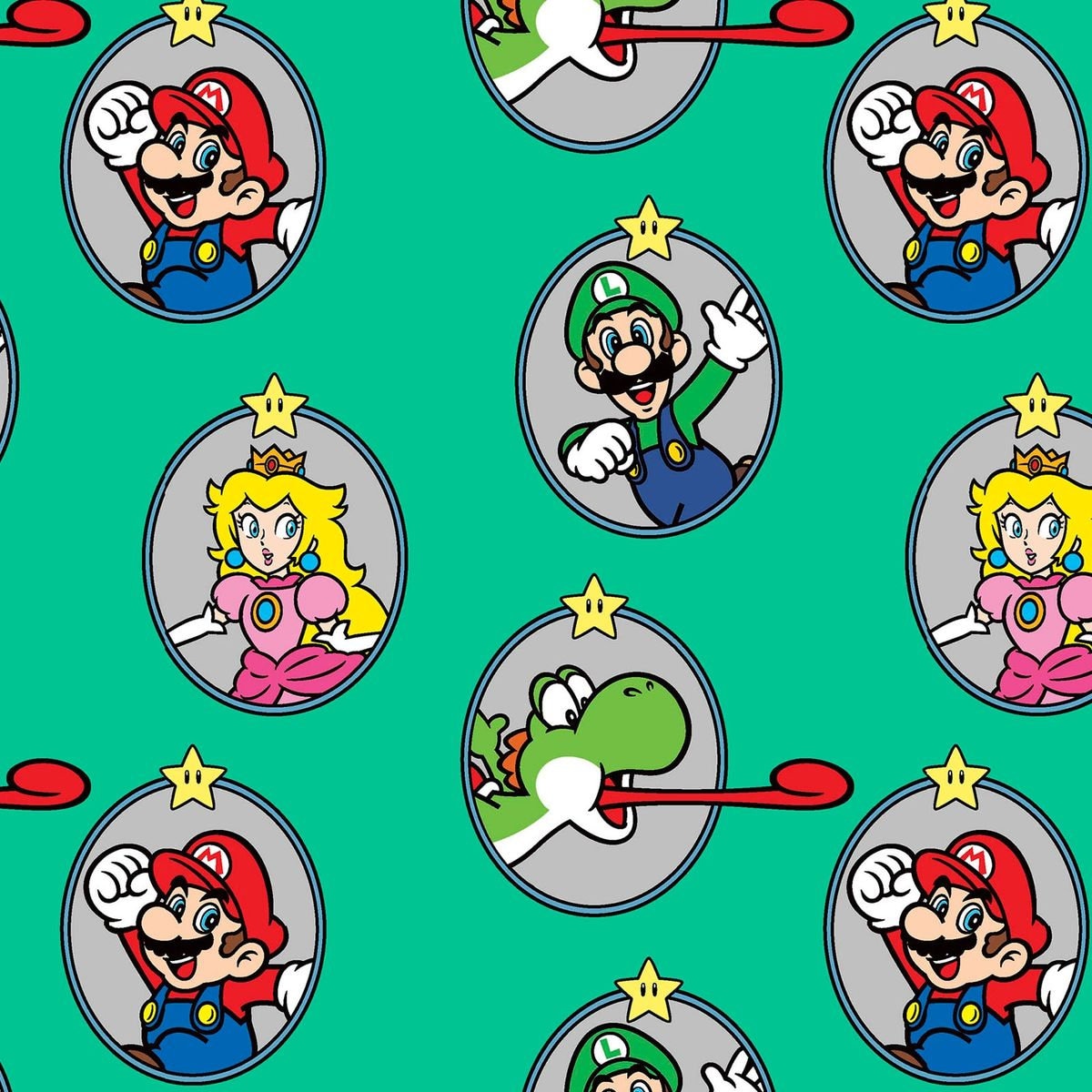 Nintendo Super Mario Badge Cotton FabricFat Quarter-18"x22"Half Yard-18"x44"1 Yard-36"x44";sold in one continuous piece. 100% CottonMachine wash gentle cold, nonchlorine bleach, tumble dry low, warm iron100% Cotton