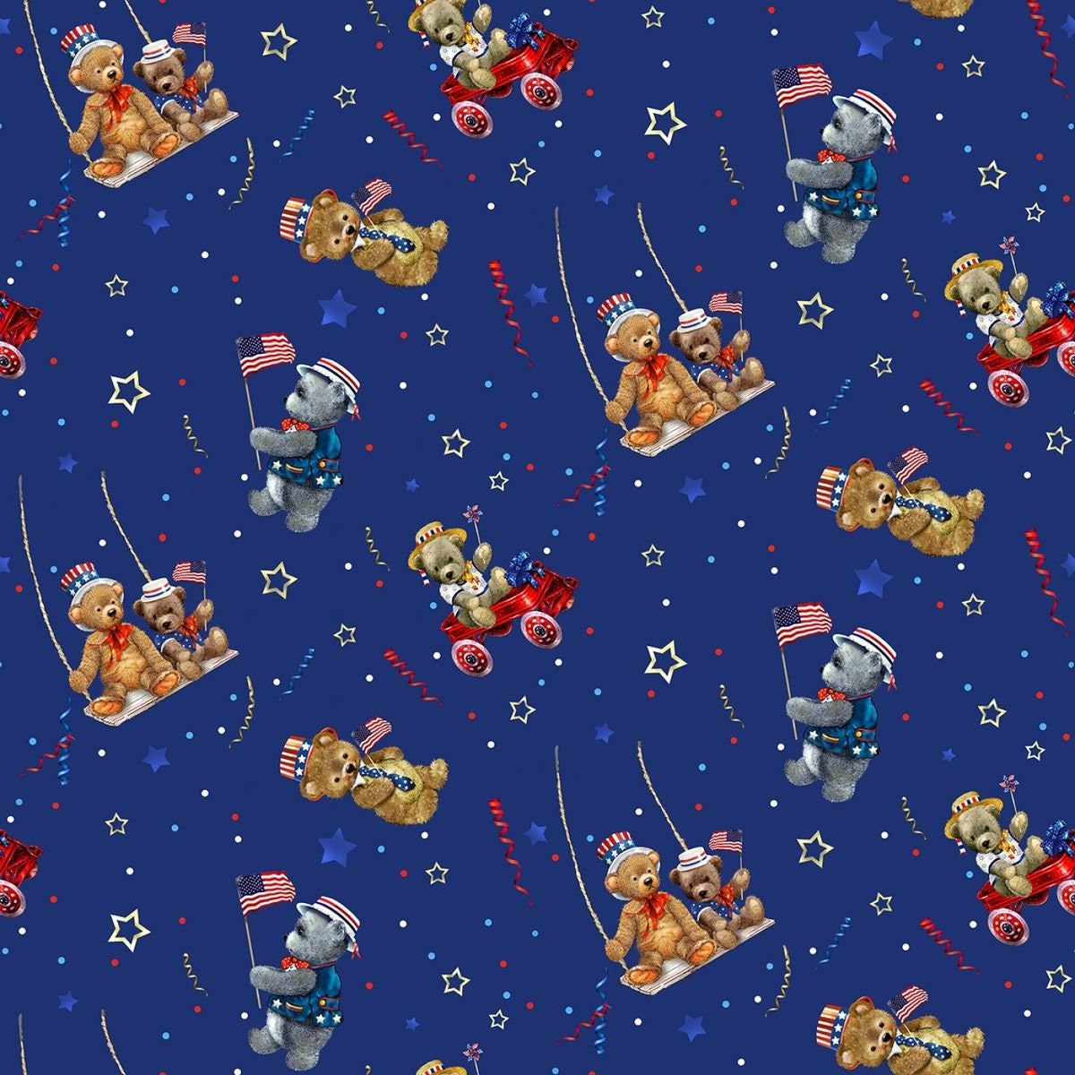 Henry Glass Teddy's America Tossed Allover Teddy-100% Cotton Fabric Fat Quarter - 18"x 22"Half Yard - 18"x 44"1 Yard-36"x 44"; sold by the yard and cut in one continuous piece.Vendor: Henry GlassContent: 100 % CottonCare: Machine wash gentle warm, non-chlorine bleach, tumble dry low.Condition: New