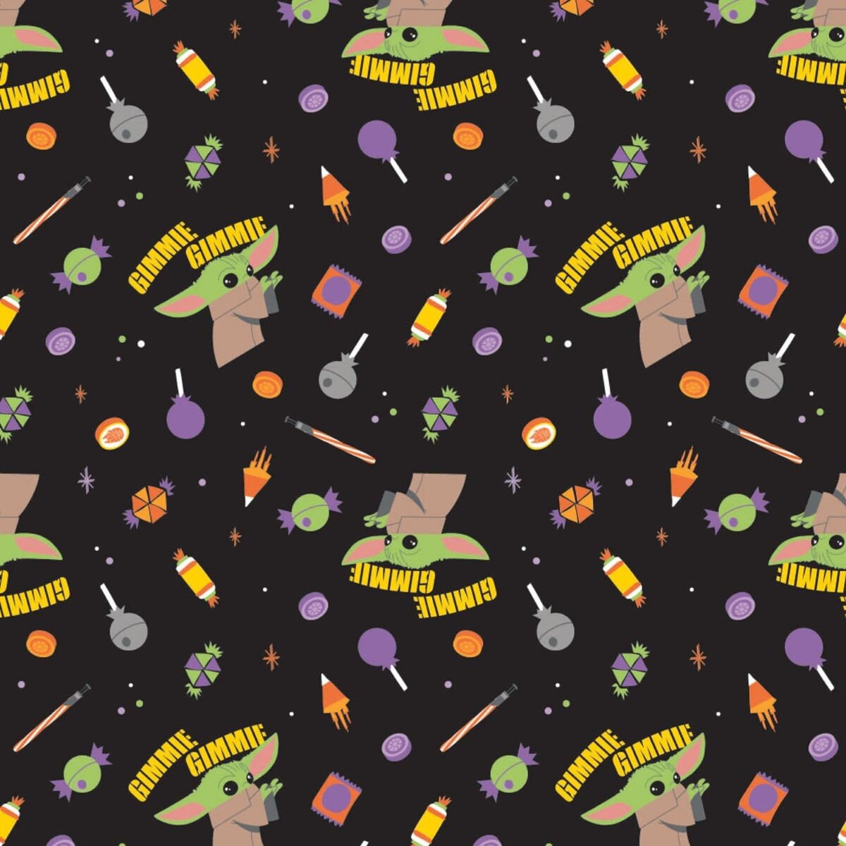 Celebrate spooky season with this Star Wars Gimme Candy Character Halloween 100% Cotton Fabric by Camelot. Featuring Star Wars characters in fun Halloween costumes and candy-themed designs, this officially licensed fabric is perfect for seasonal quilts, décor, costumes, tote bags, and crafts.