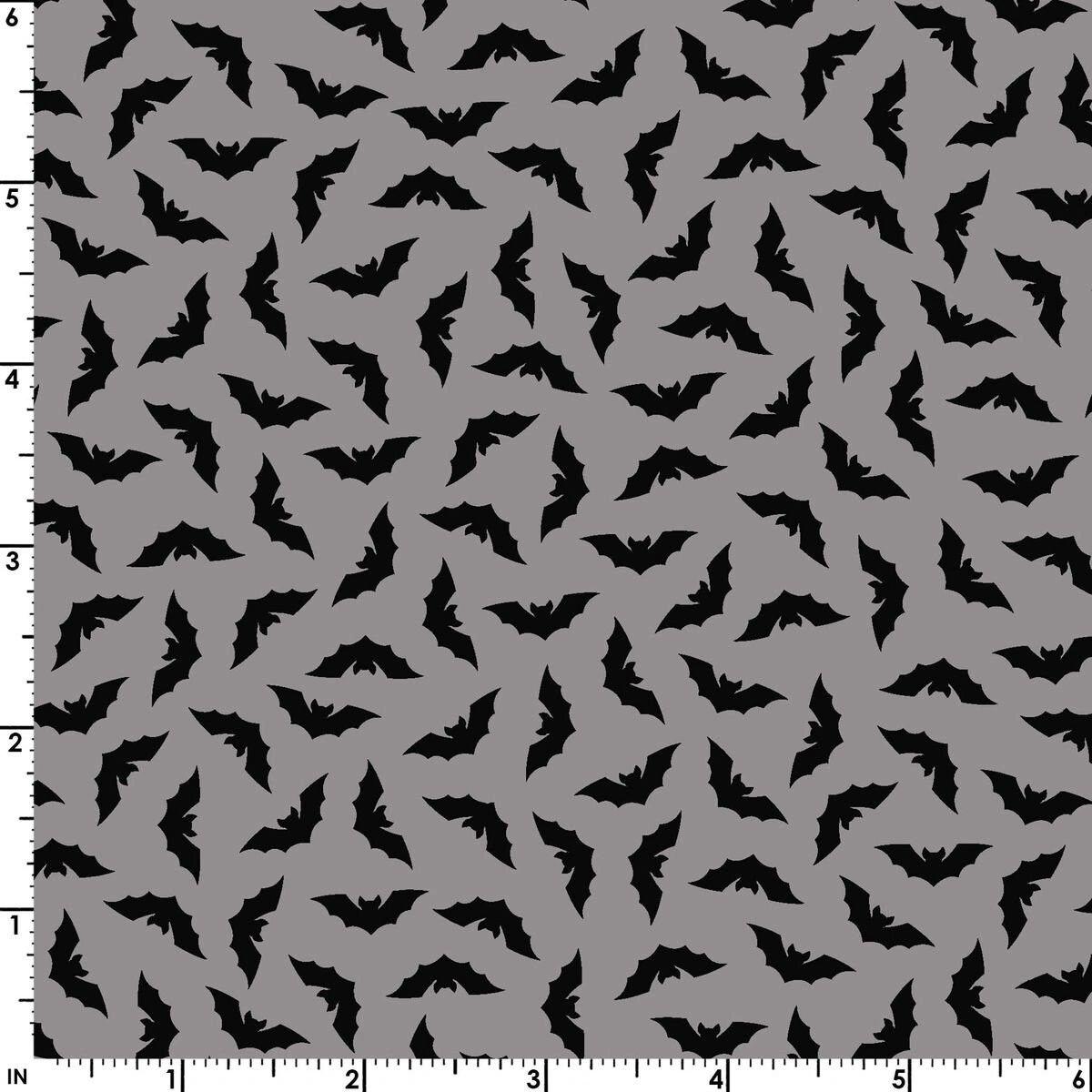 Add spooky style to your sewing with this Kimberbell Hometown Halloween Bats Grey 100% Cotton Fabric by Maywood Studios. Featuring a playful tossed bat print on a grey background, this novelty fabric is perfect for Halloween quilts, festive décor, costumes, and crafts.