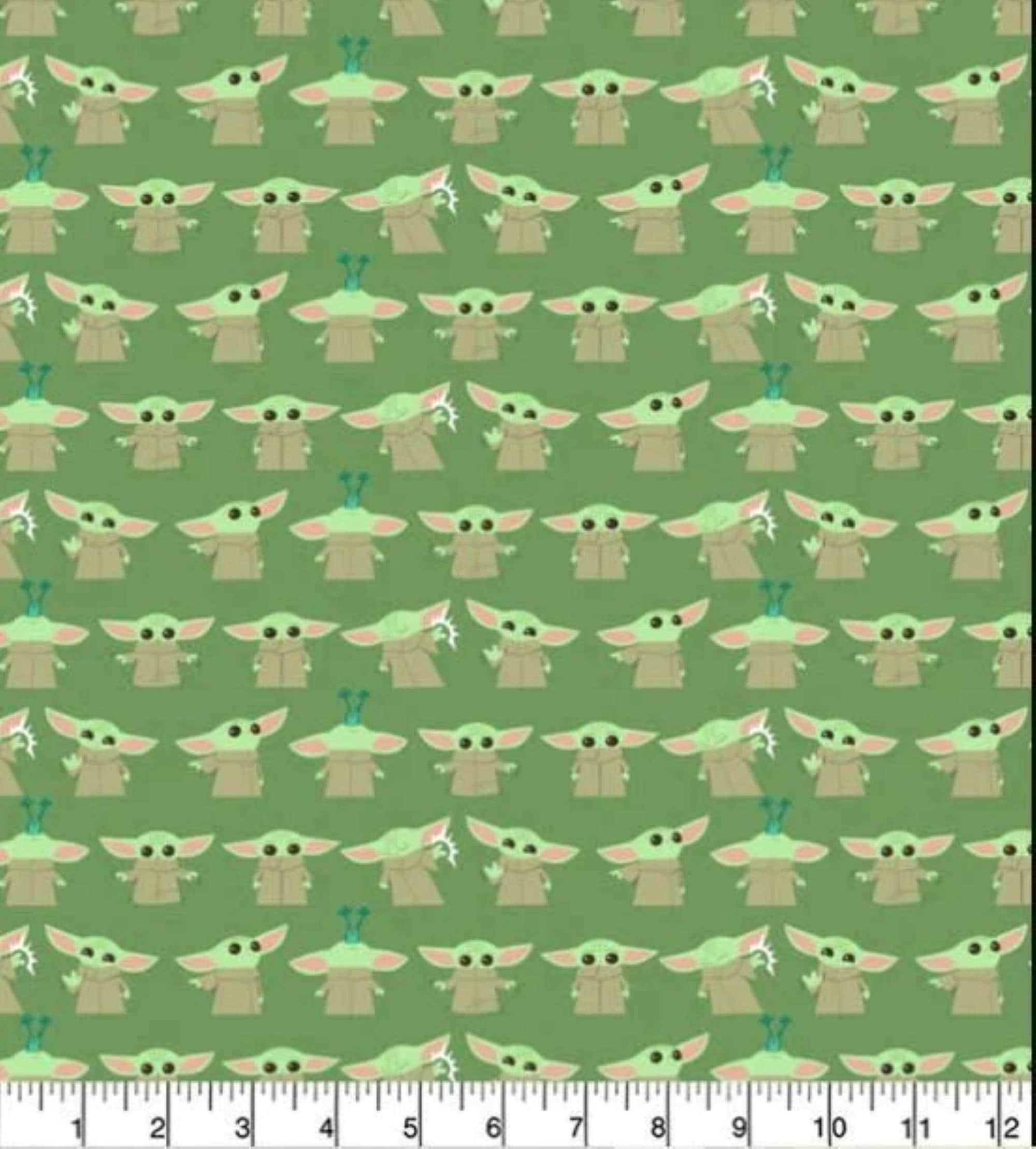 Add galactic charm to your projects with this Star Wars Mandalorian The Child Green 100% Cotton Fabric by Camelot. This officially licensed Star Wars fabric features Grogu (Baby Yoda) in adorable poses against a green backdrop, making it perfect for quilts, apparel accents, crafts, and décor.