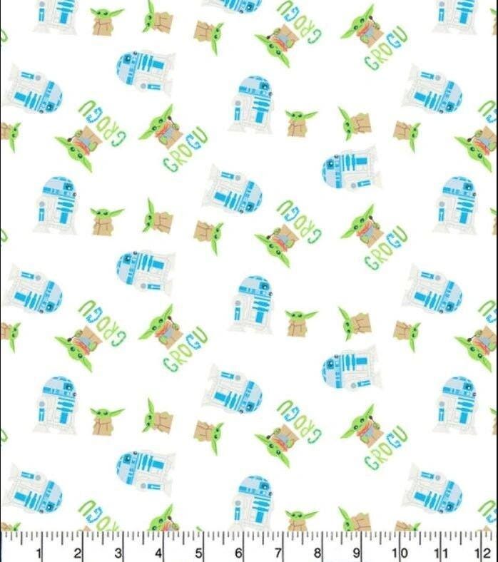 Bring the galaxy to your sewing with this Star Wars Mandalorian Grogu R2D2 Toss 100% Cotton Fabric by Camelot. Featuring a playful tossed design with Grogu (The Child) and R2D2, this officially licensed Star Wars fabric is perfect for quilting, apparel accents, décor, and crafts.