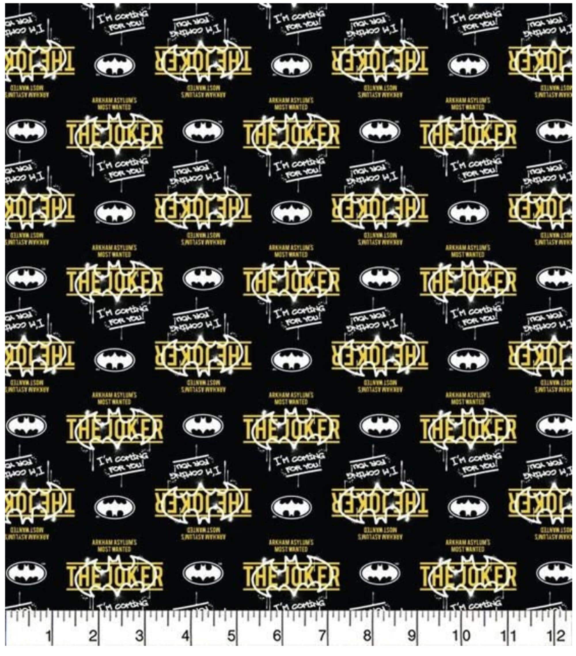 DC Batman Coming for You Joker Cotton Fabric Fat Quarter-18"x22" Half Yard-18"x44" 1 Yard-36"x44";sold in one continuous piece. 100% Cotton Machine wash gentle cold, nonchlorine bleach, tumble dry low, warm iron100% Cotton