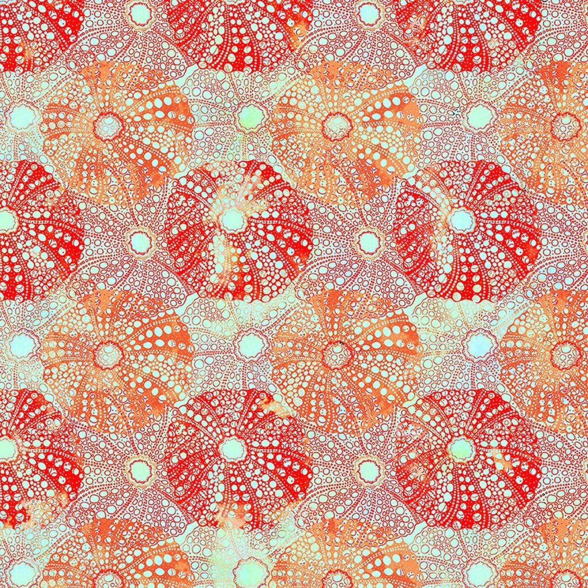 Calypso II Sea Urchins Orange 100% Cotton Fabric Designer: Jason Yenter