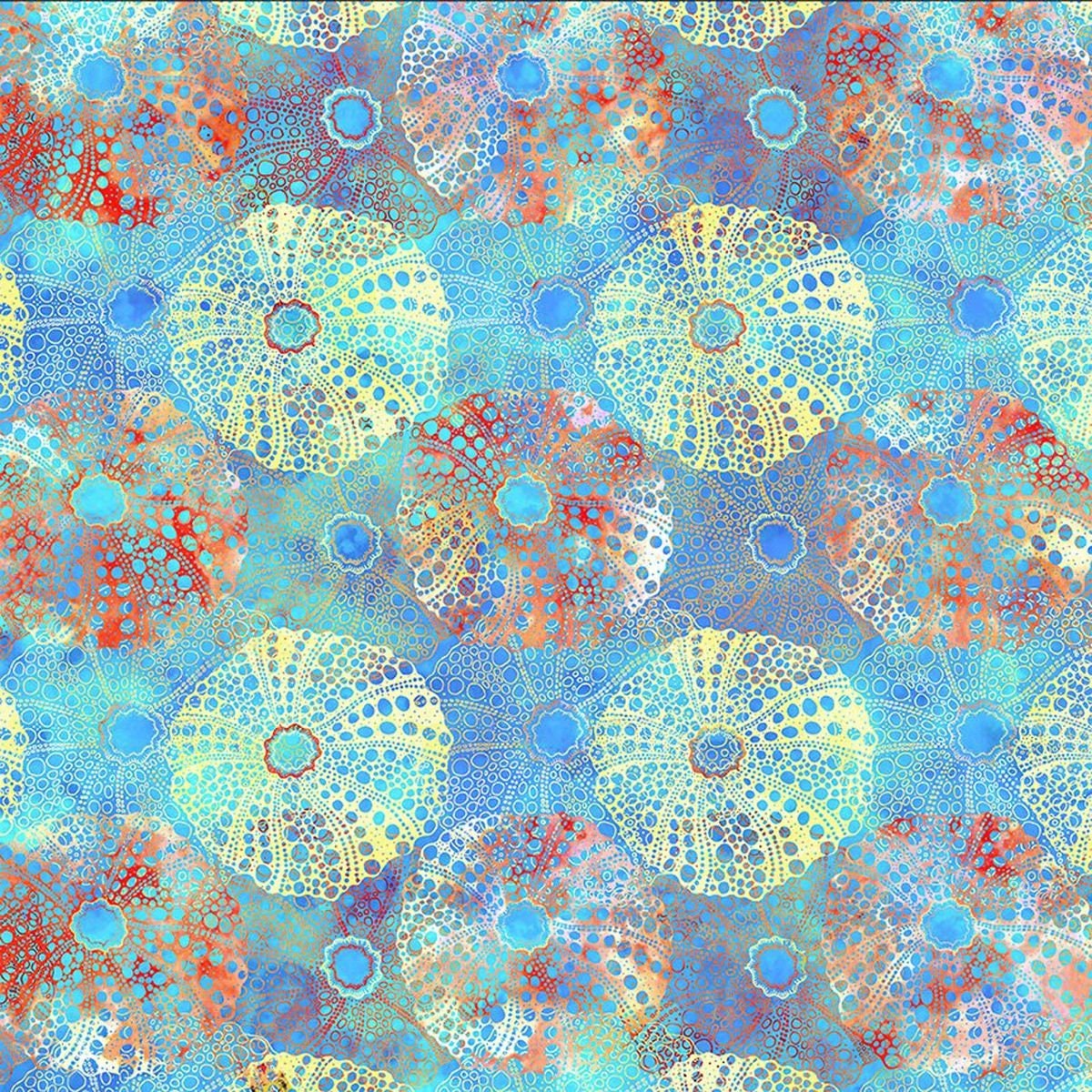 Calypso II Reef 100% Cotton Fabric Designer: Jason Yenter Fat Quarter - 18"x21" Half Yard - 18" x 43" 1 Yard - 36" x 43"; sold by the yard in one continuous piece. Vendor: In The Beginning 100 % Cotton Fabric Care: Machine wash gentle cold, non-chlorine bleach, tumble dry low, cool iron.