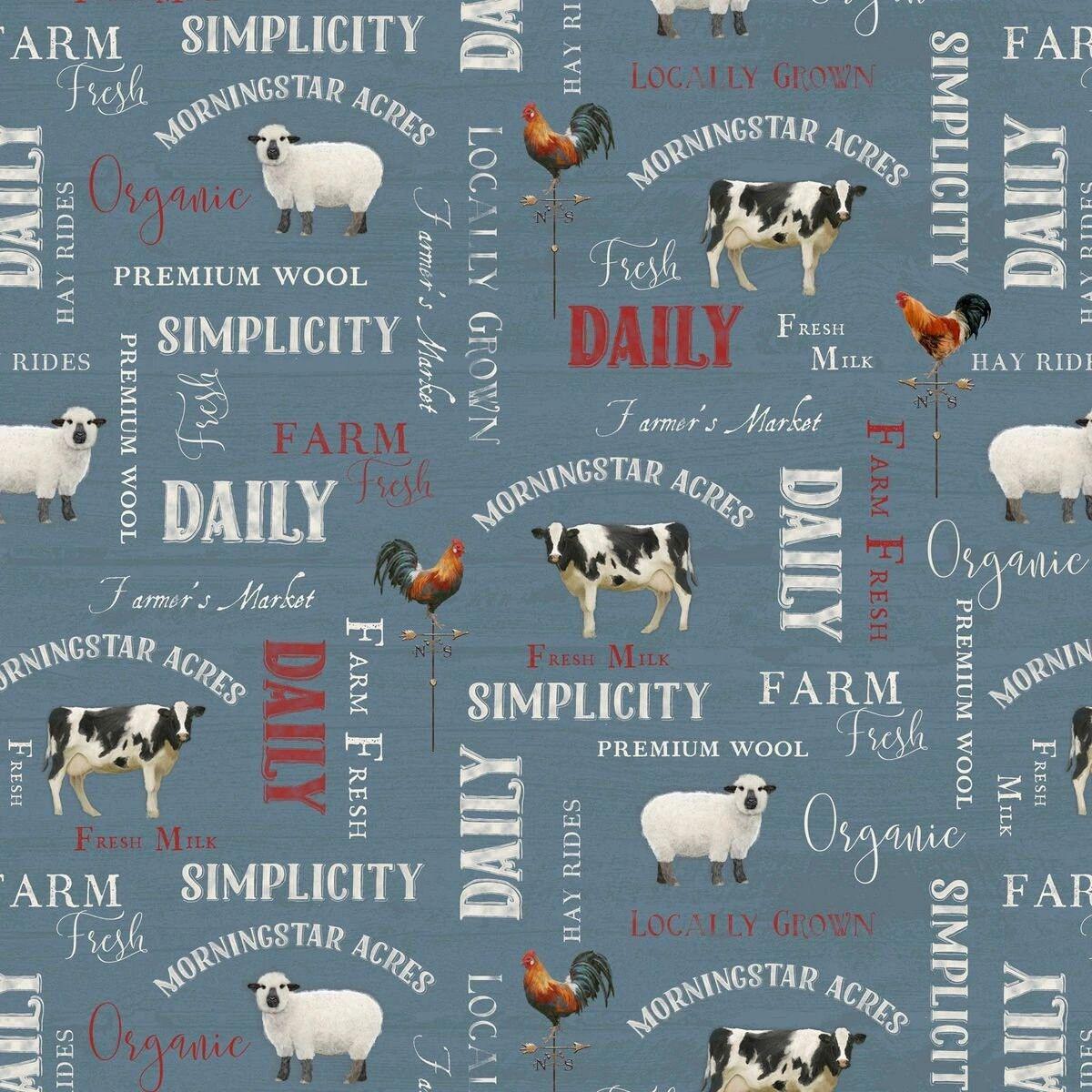 P&B Textiles Farm Fresh Animal Words Cotton Fabric