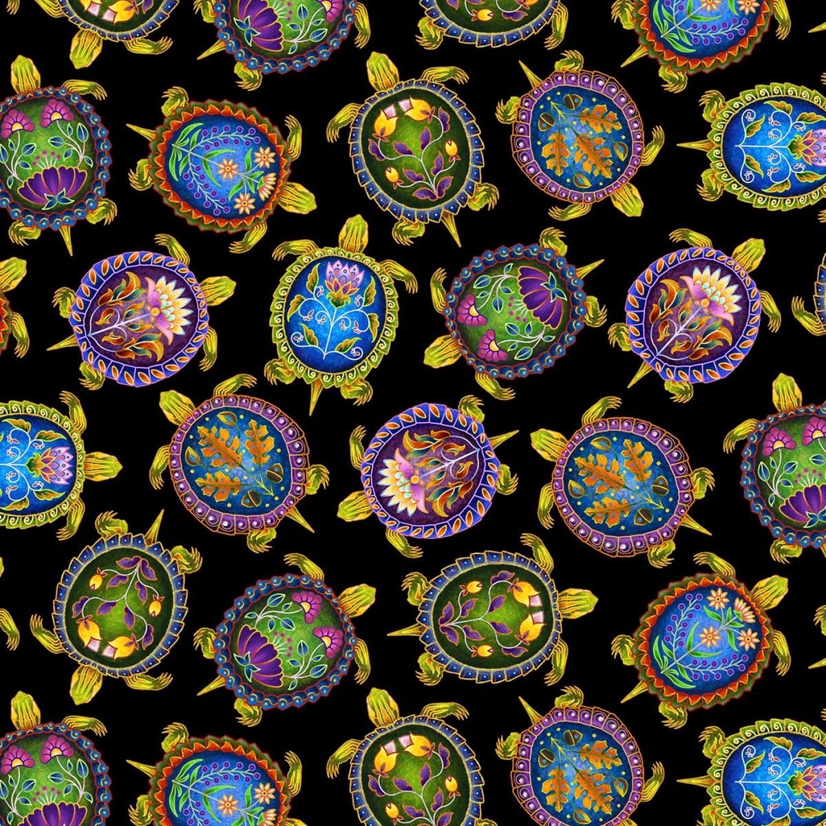 Indigenous Turtles Tossed Turtles 100% Cotton Fabric Fat Quarter- 18"x21" Half Yard-18"x43" 1 Yard-36"x43" Vendor: Elizabeth Studios Care: Machine wash warm, tumble dry low. Cool iron, if necessary. Condition: New