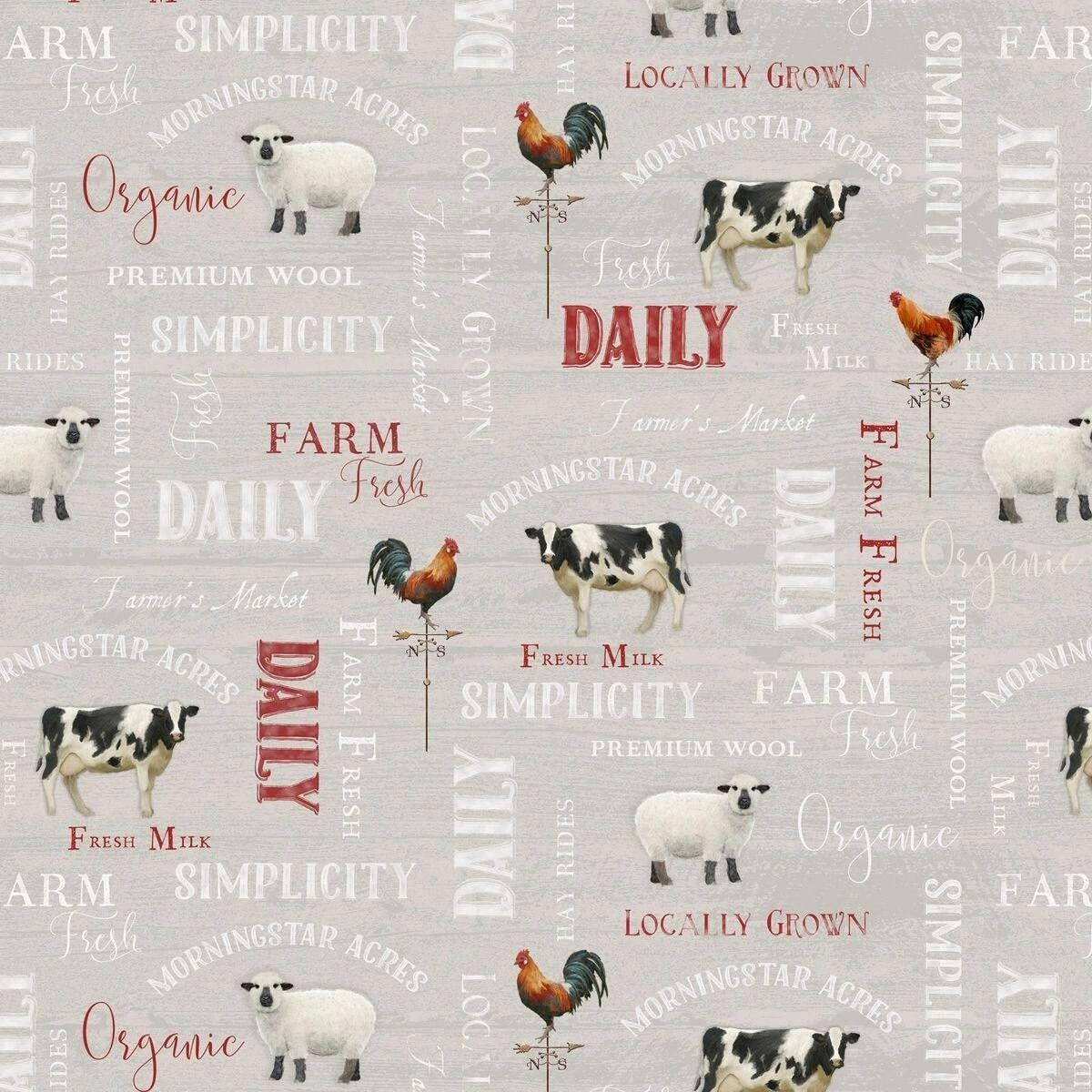 P&B Textiles Farm Fresh Animal Words Sand Cotton Fabric