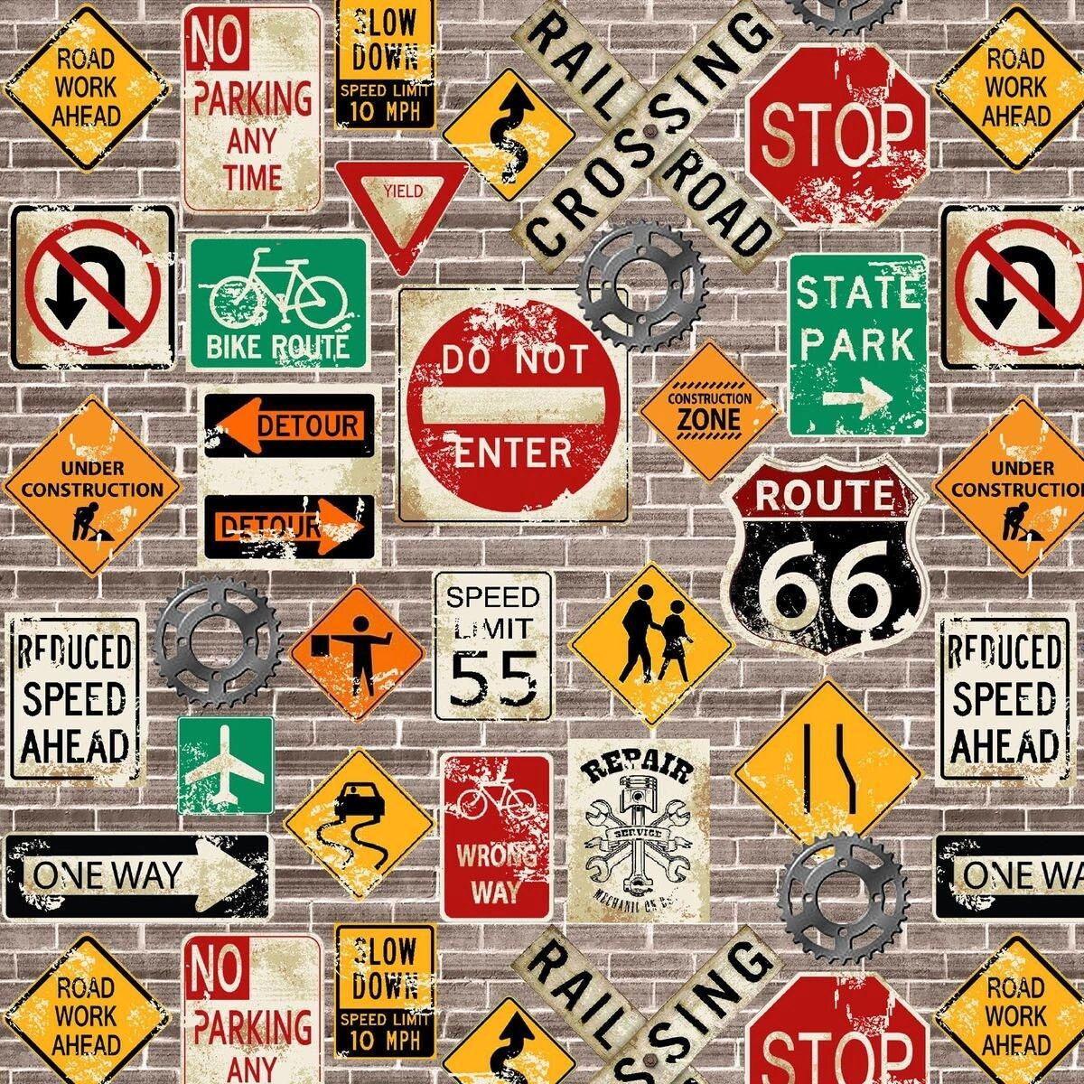 Henry Glass My Tools My Rules Sign Tossed Cotton Fabric