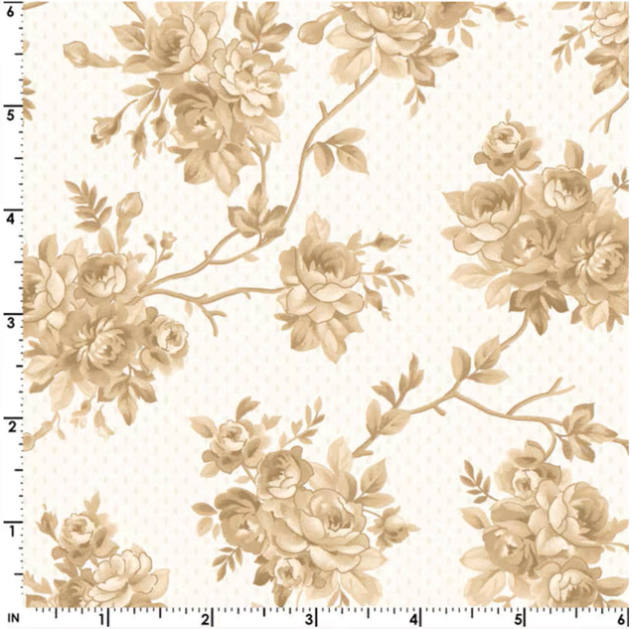 This Maywood Studios floral cotton fabric blends timeless rose patterns with soft earth tones, making it a must-have for quilters and crafters who love romantic and elegant designs.