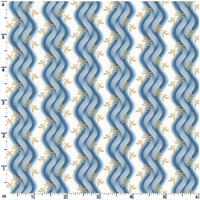 Maywood Studios American Beauty - Zig Zag Fern Blue 100% Cotton Fabric