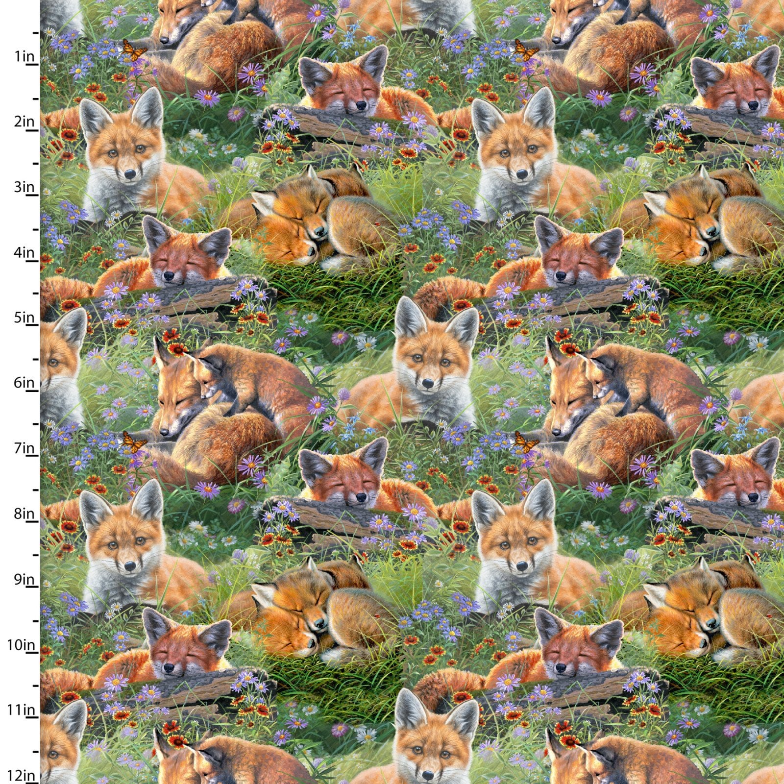 3 Wishes Mountain Sunrise Sleepy Foxes Green 100% Premium Cotton Fabric