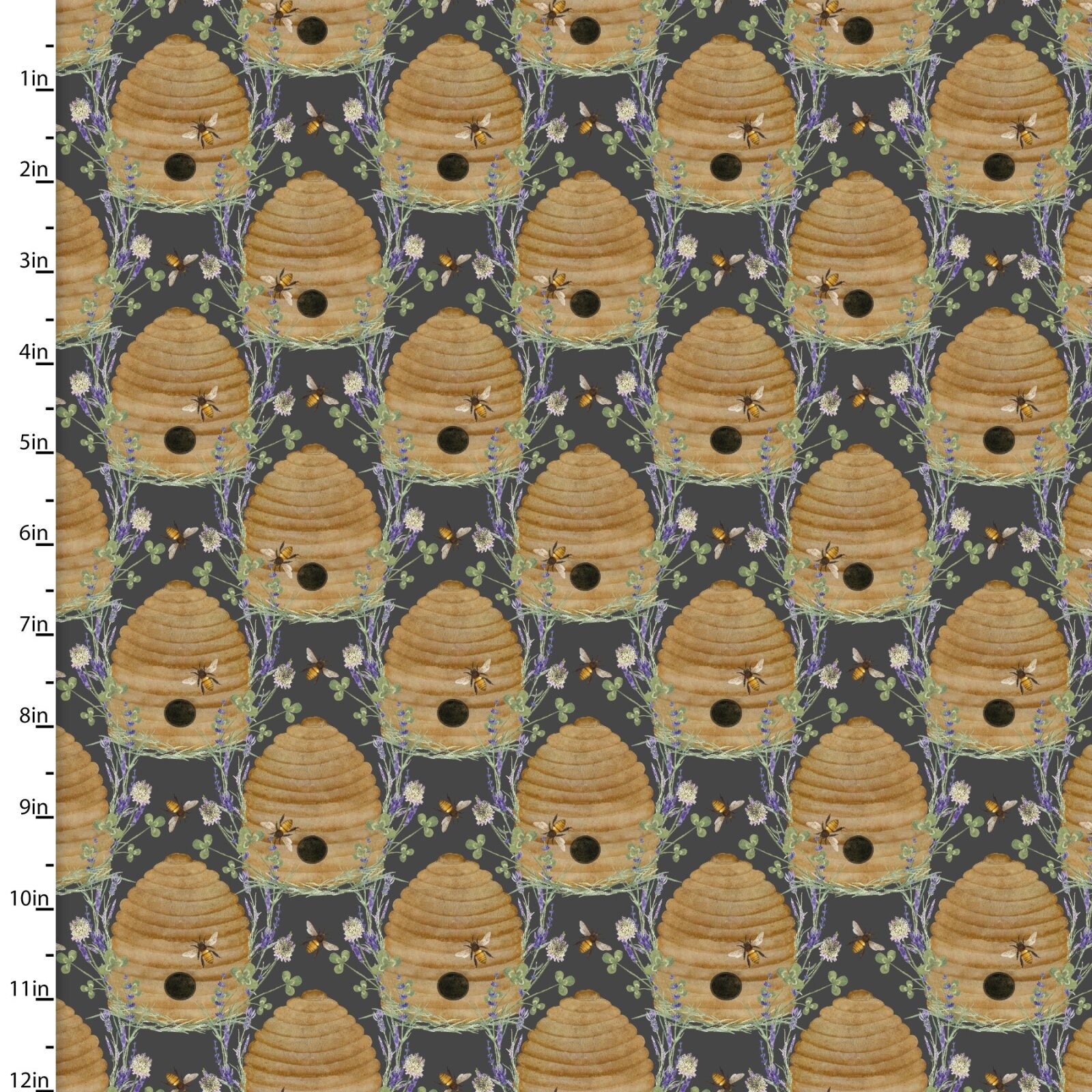 3 Wishes Locally Grown Bee Hives Charcoal 100% Premium Cotton Fabric