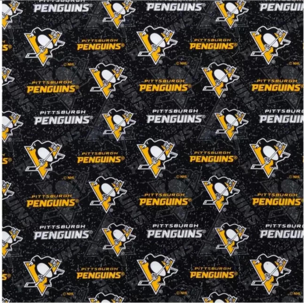 Show your hockey pride with this NHL Pittsburgh Penguins 100% Cotton Fabric. Featuring official team logos and colors, this Penguins fabric is perfect for quilting, apparel, home décor, and sports crafts.