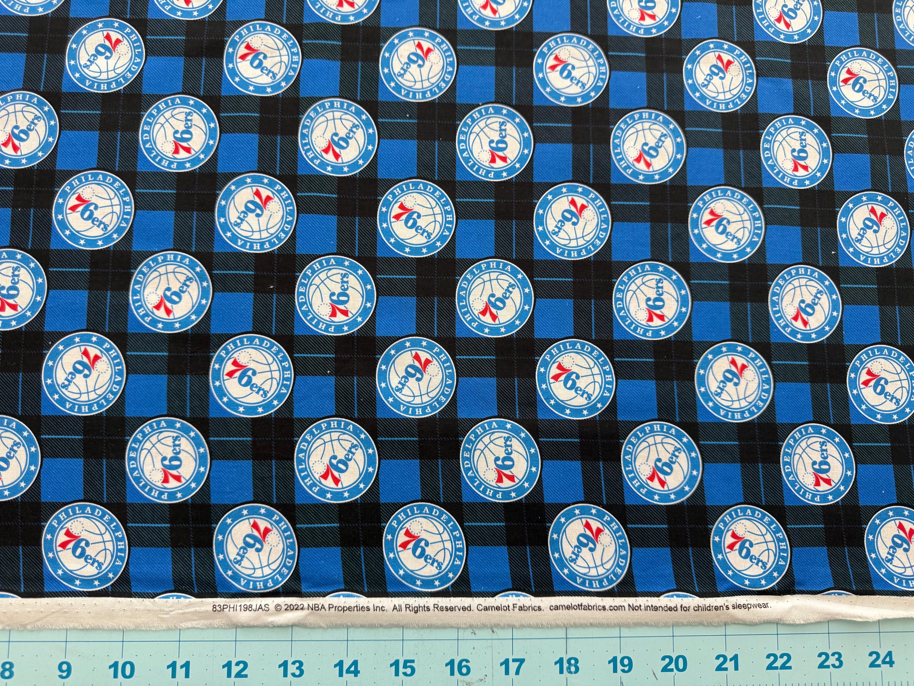 Show off your team spirit with this NBA Philadelphia 76ers 100% Cotton Fabric by Camelot Fabrics. This officially licensed NBA fabric features the Philly 76ers team logos and colors, making it perfect for fan projects, quilting, crafts, apparel accents, and home décor.