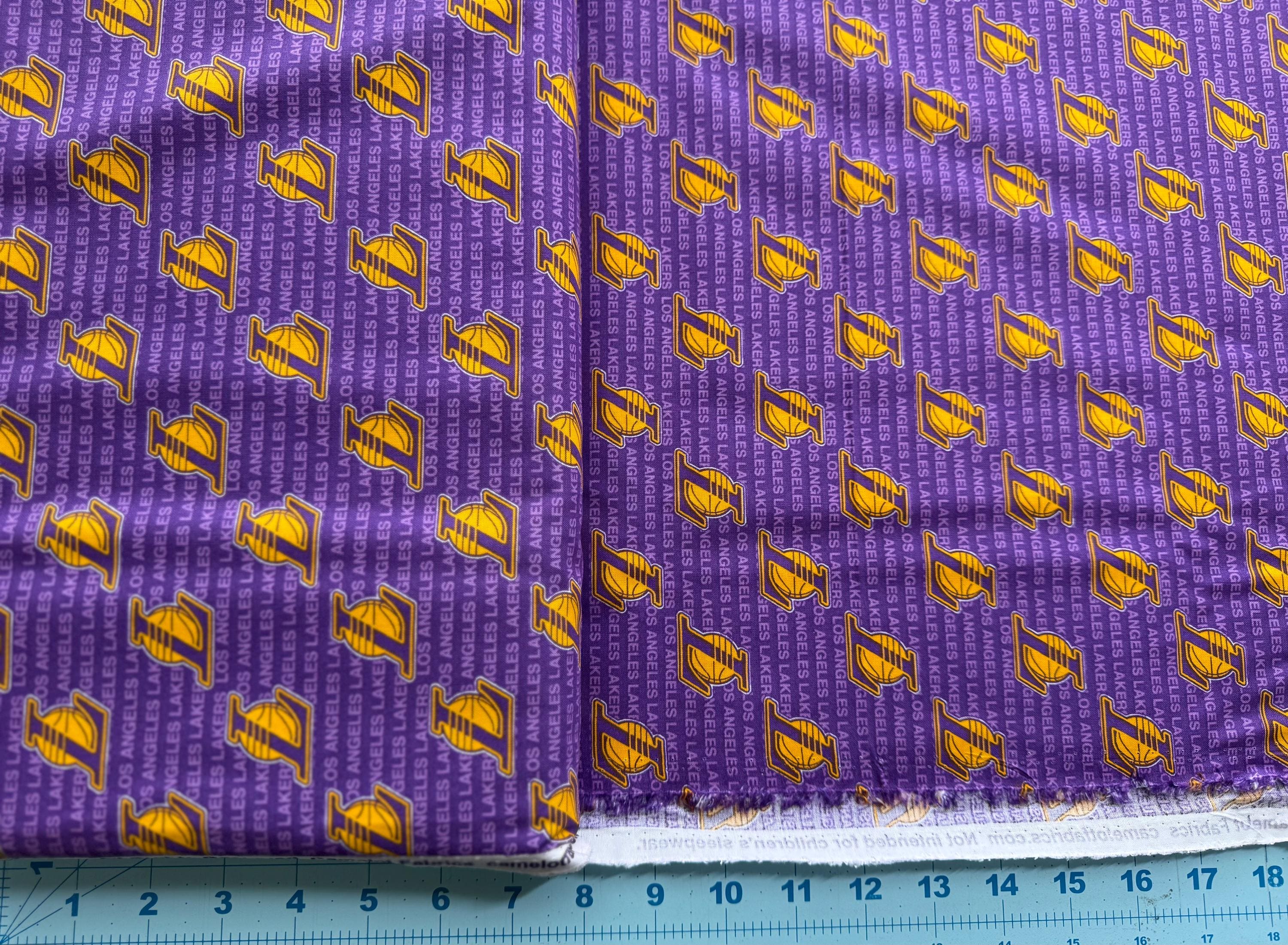Show off your team spirit with this NBA Los Angeles Lakers 100% Cotton Fabric by Camelot Fabrics. This officially licensed NBA fabric features the Lakers team logos and colors, making it perfect for fan projects, quilting, crafts, apparel accents, and home décor.