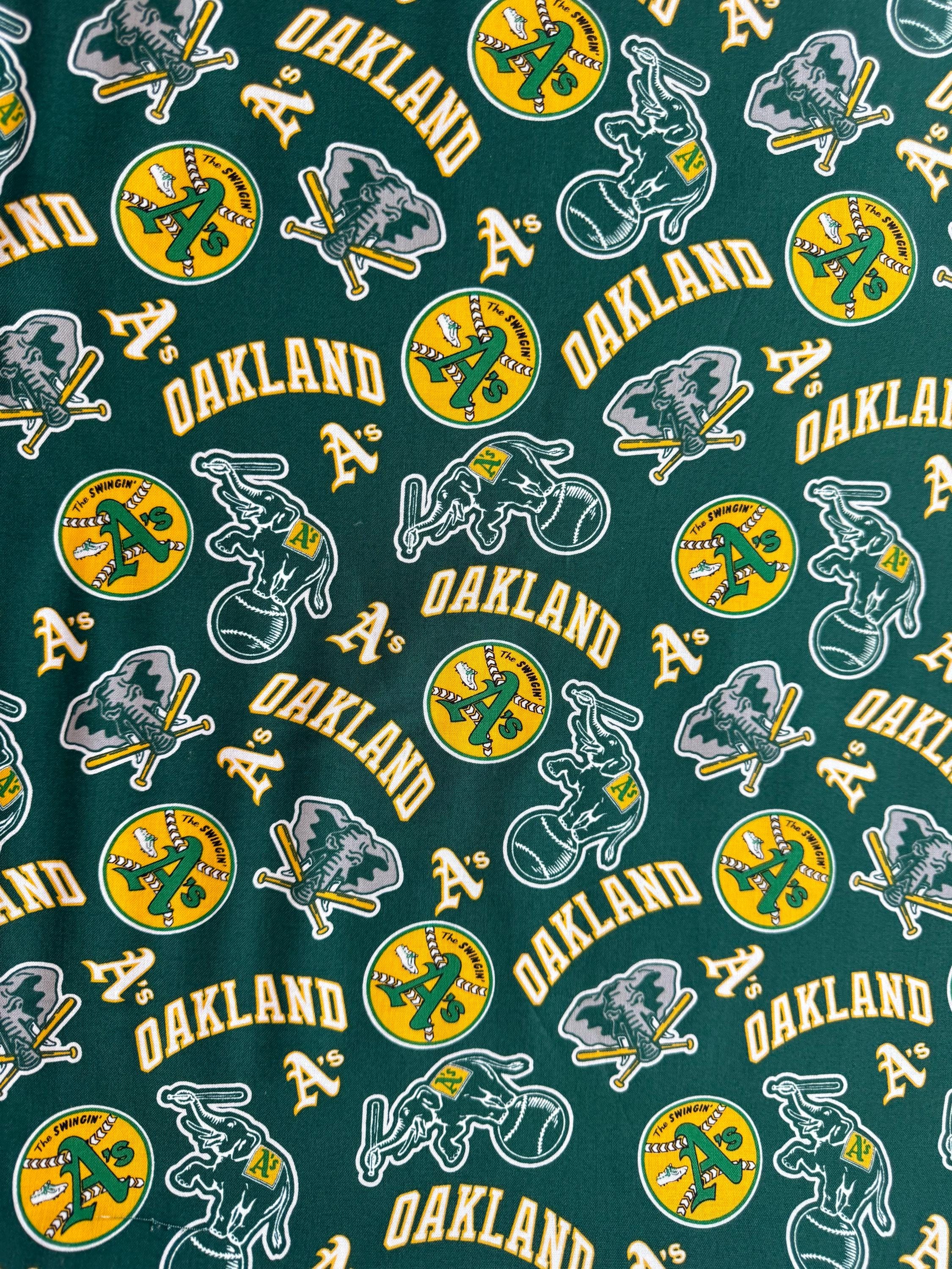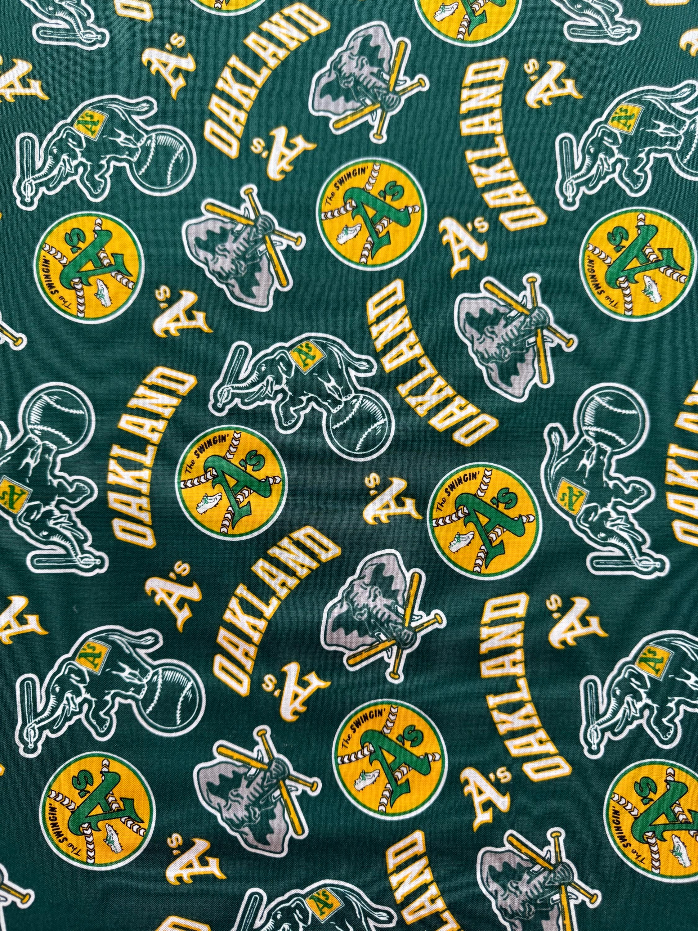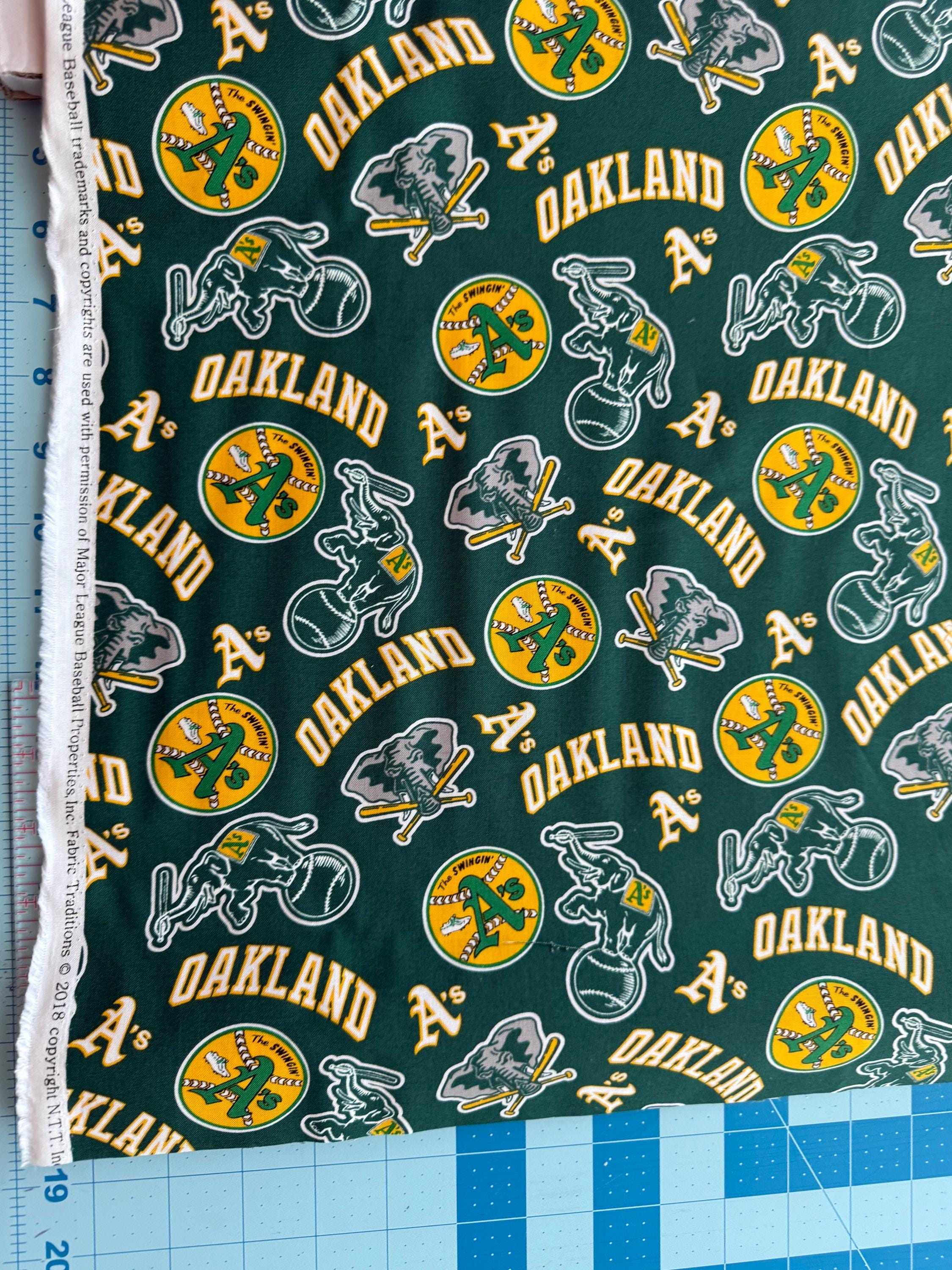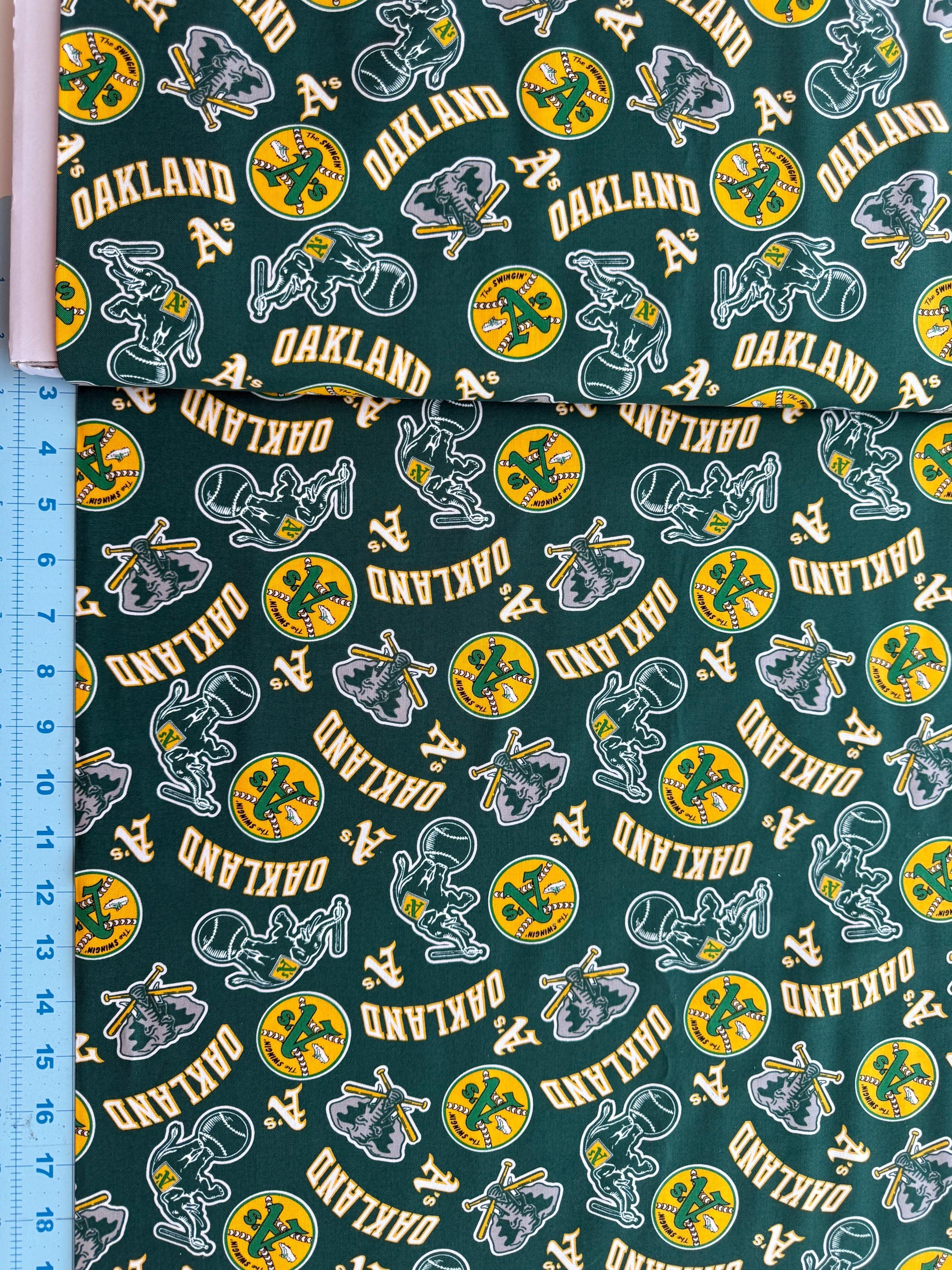 This officially licensed MLB Oakland fabric is a fun addition to any sewing collection, perfect for baseball season, projects, or fan-inspired crafts.