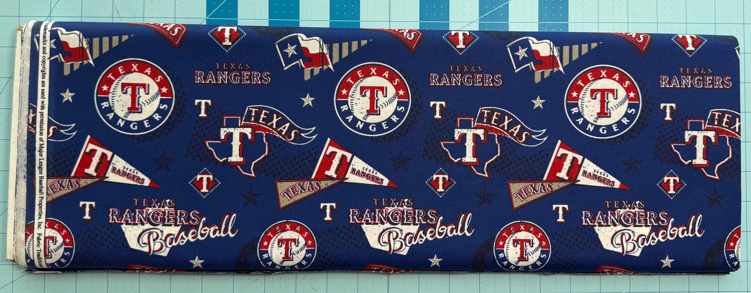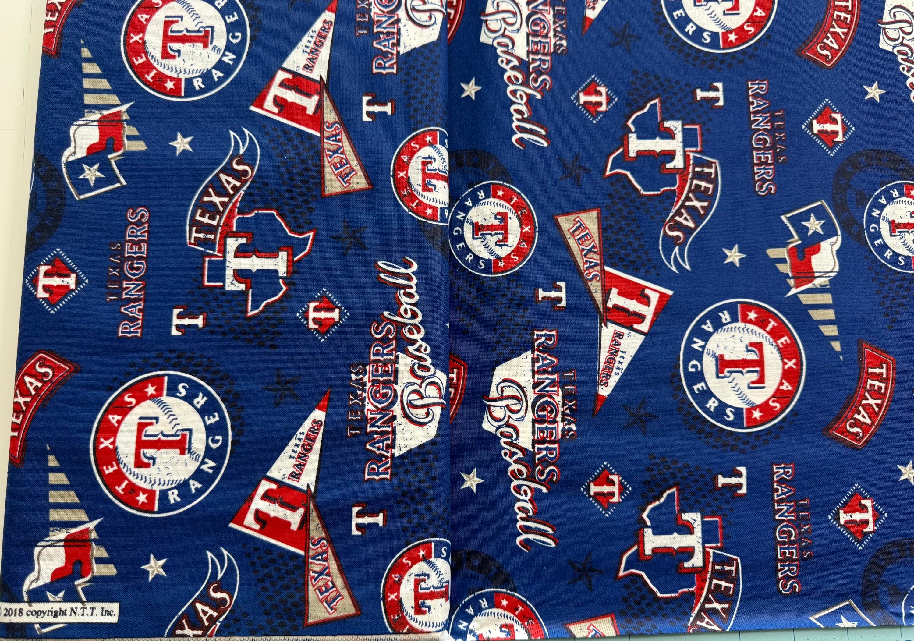 Celebrate classic baseball with this MLB Texas Rangers 100% Cotton Fabric by Fabric Traditions. This officially licensed MLB fabric features Rangers logos, making it perfect for quilts, fan décor, apparel accents, and handmade gifts.