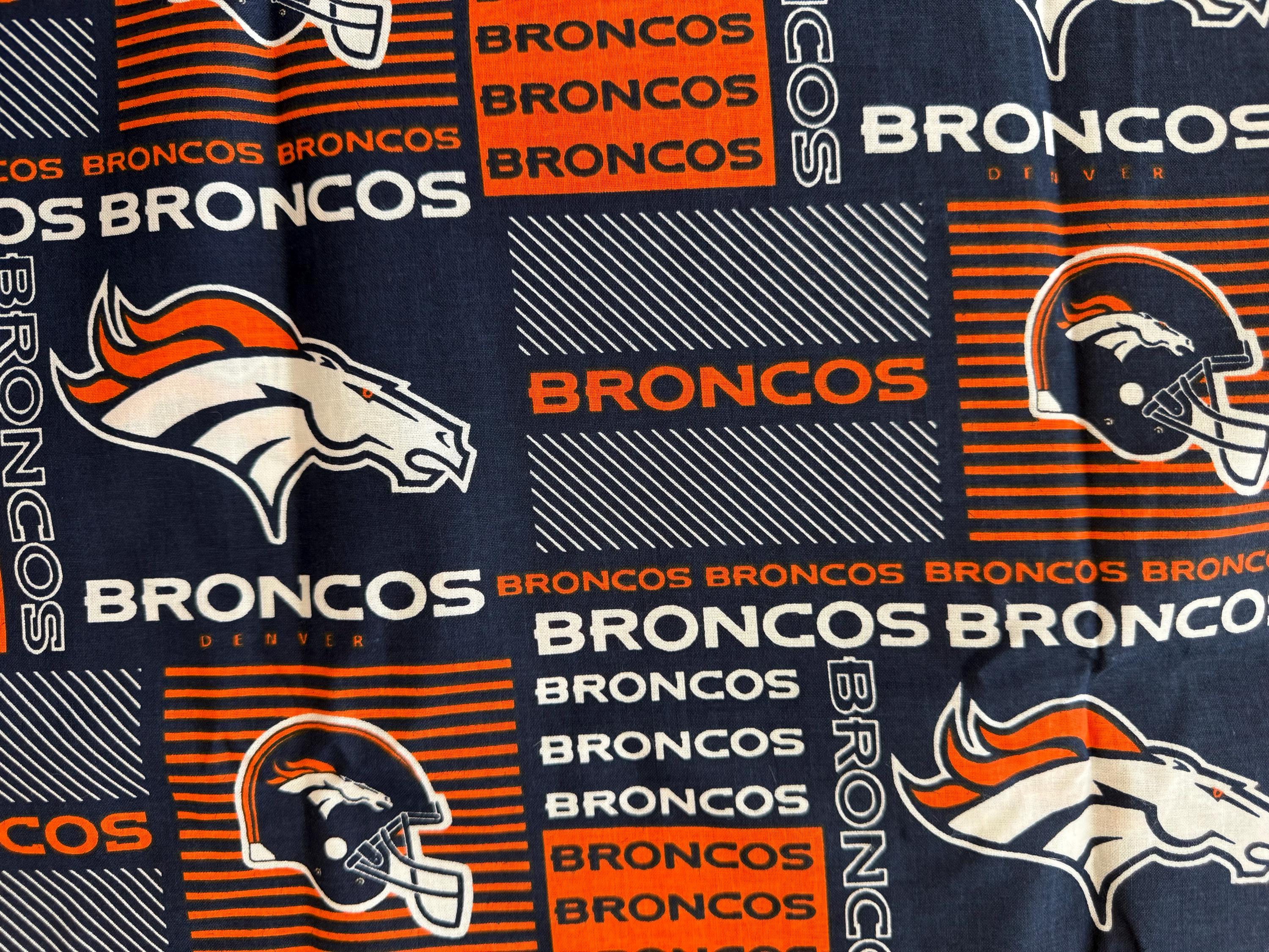 Show your team spirit with this NFL Denver Broncos 100% Cotton Fabric by Fabric Traditions. Featuring the official Broncos logos and colors, this fabric is perfect for creating fan gear, game-day décor, quilts, apparel, and craft projects.