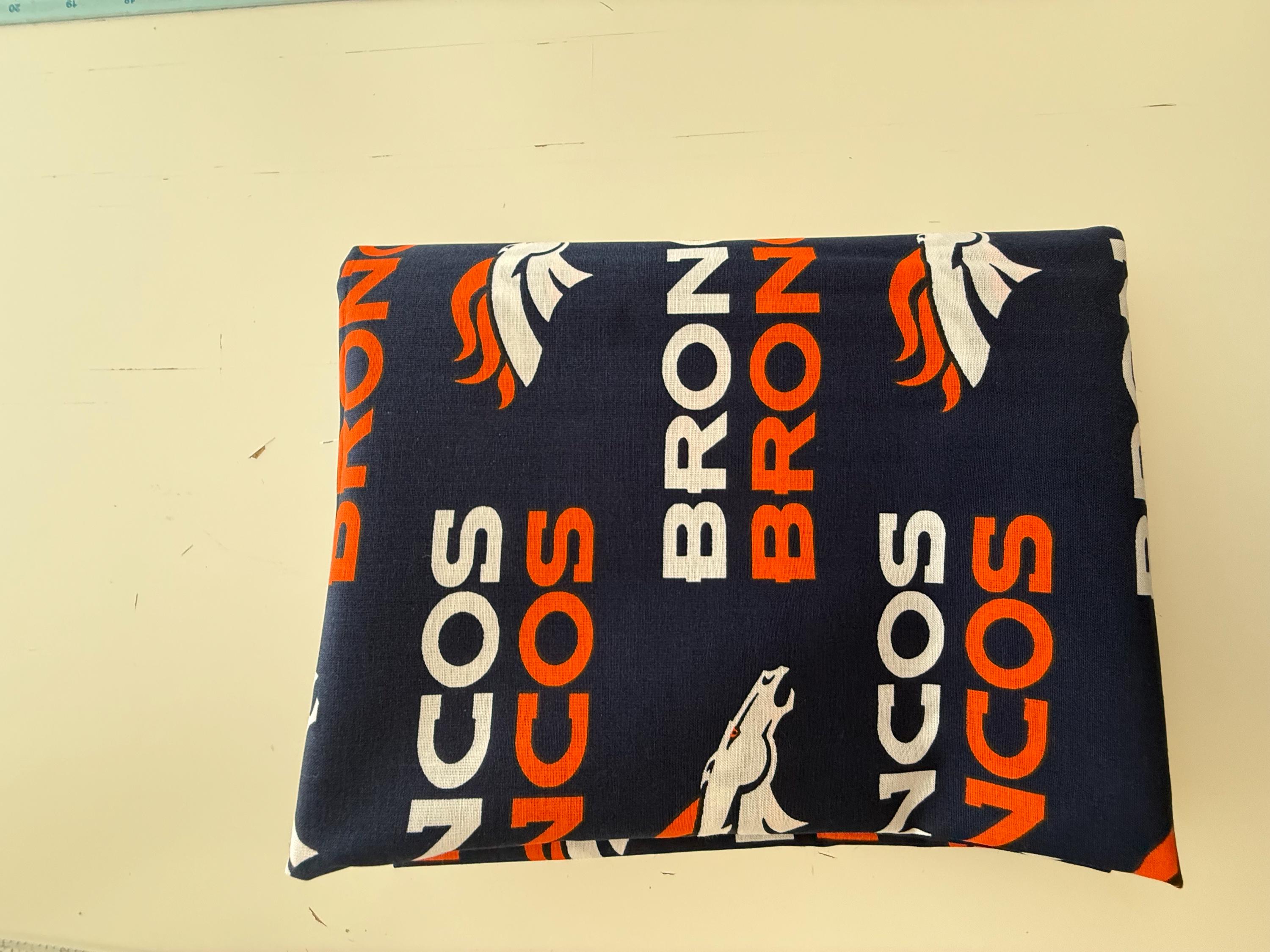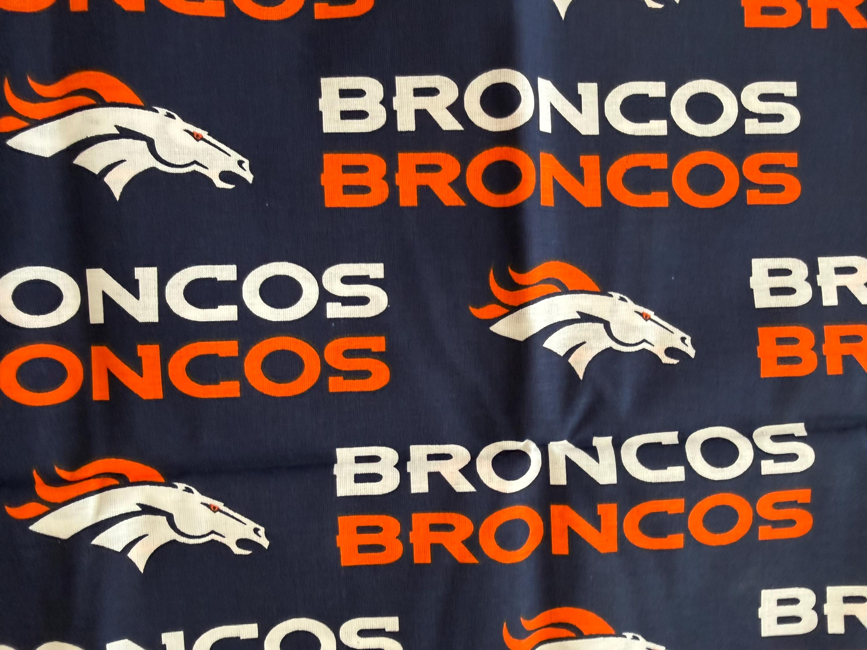 Show your team spirit with this NFL Denver Broncos 100% Cotton Fabric by Fabric Traditions. Featuring the official Broncos logos and colors, this fabric is perfect for creating fan gear, game-day décor, quilts, apparel, and craft projects.