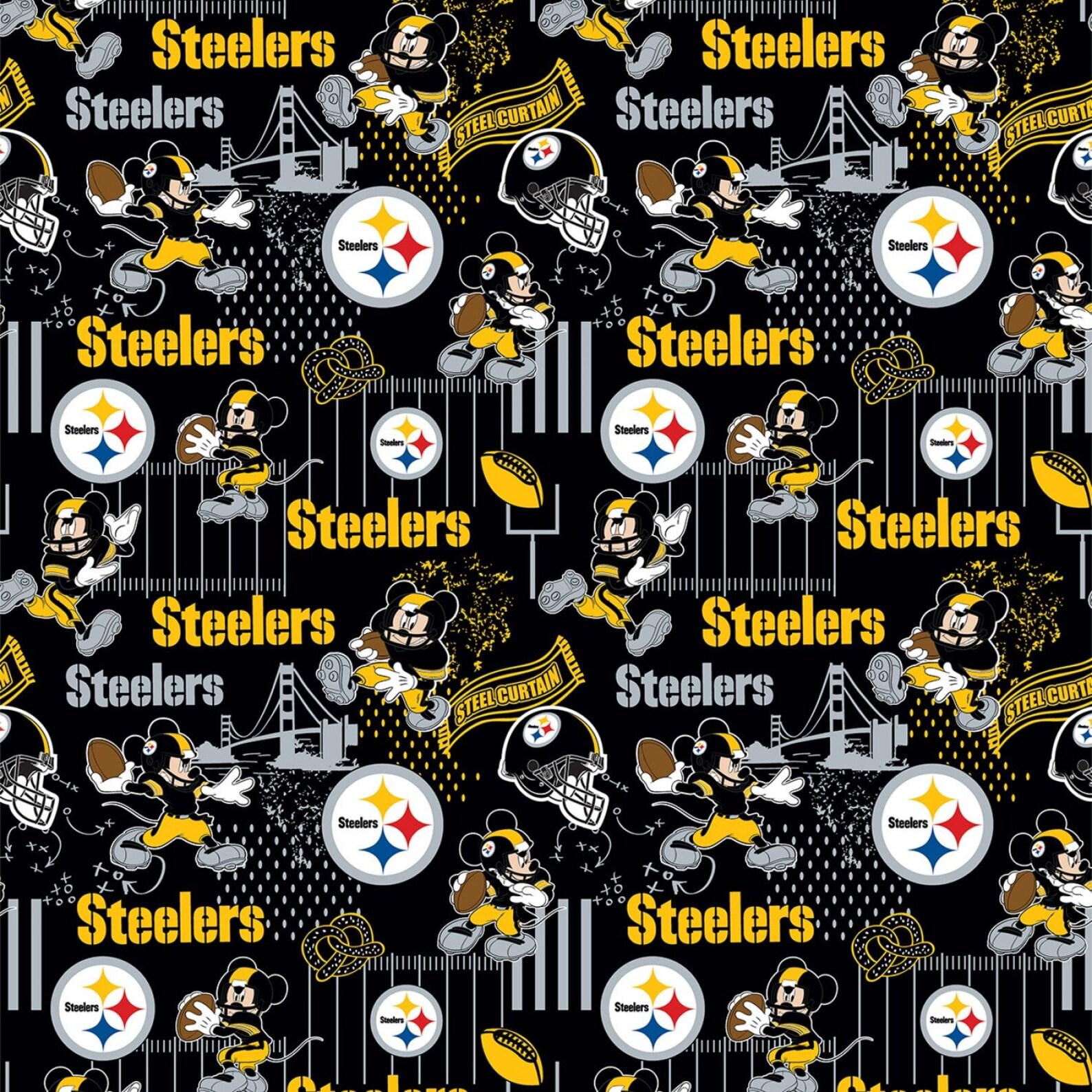 NFL Mickey/Pittsburgh Steelers 100% Quilt Cotton Fat Quarters are 18" x 22" Half Yards are 18" x 44" 1 yard cuts are 36" x 44"; continuous cut when you order multiple quantities. Content: 100% Cotton Vendor: Fabric Traditions Care: Machine wash gentle cold, non-chlorine bleach, tumble dry low, warm iron. Condition: New