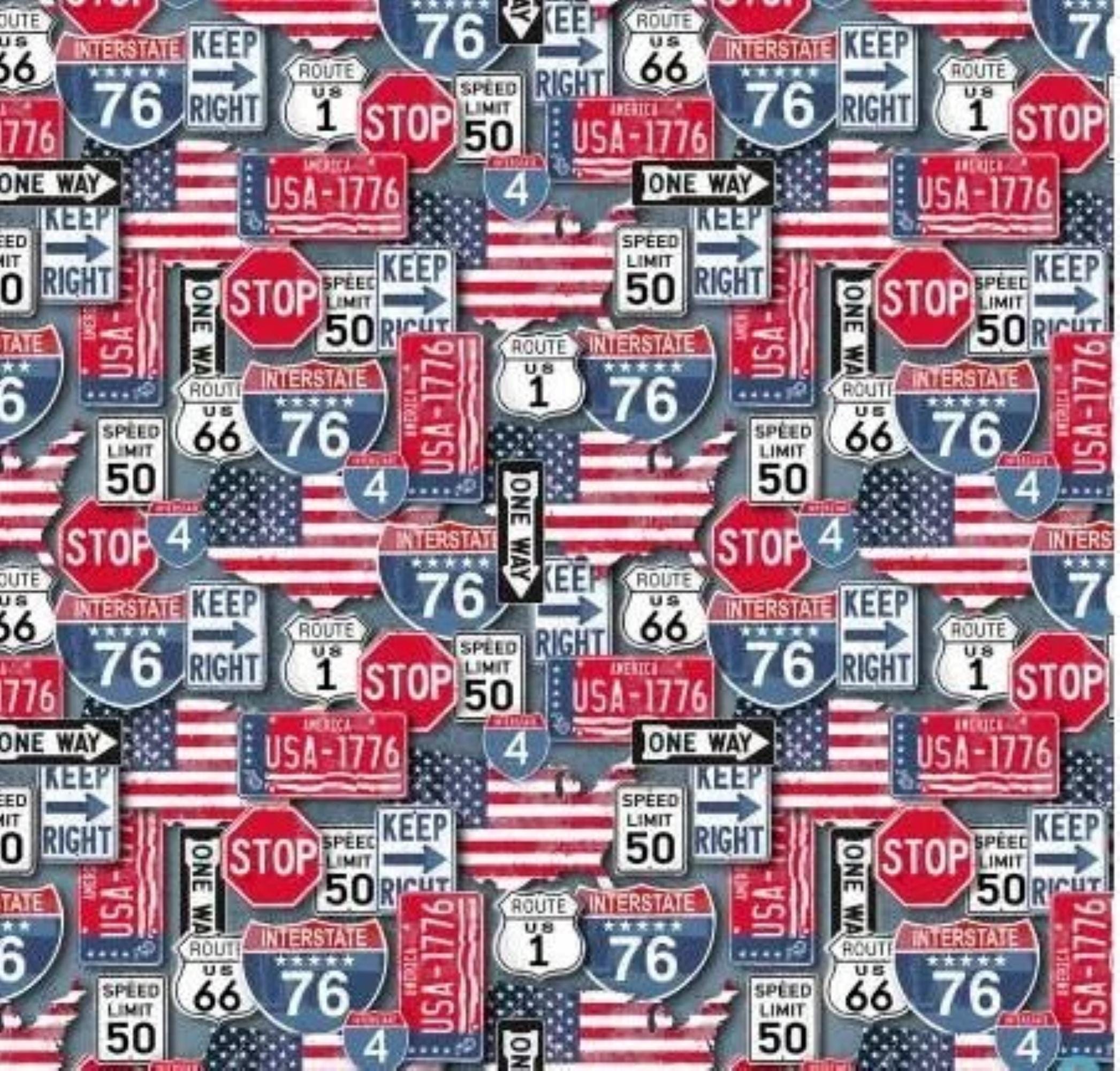 This novelty quilting fabric celebrates classic Americana with a travel twist, making it perfect for sewists who love unique, themed projects.