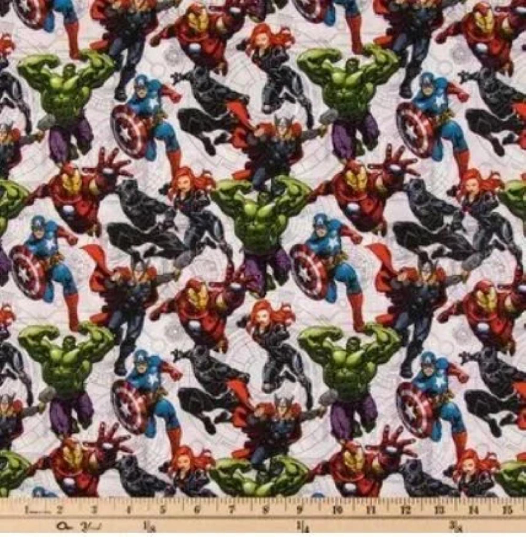 Unite Earth’s Mightiest Heroes in your next project with this Marvel Avengers Unite 100% Cotton Fabric by Springs Creative. This officially licensed Marvel fabric features Thor, Hulk, Captain America, Iron Man, Black Widow, and Black Panther, making it perfect for superhero quilts, décor, apparel accents, bags, and fun crafts.