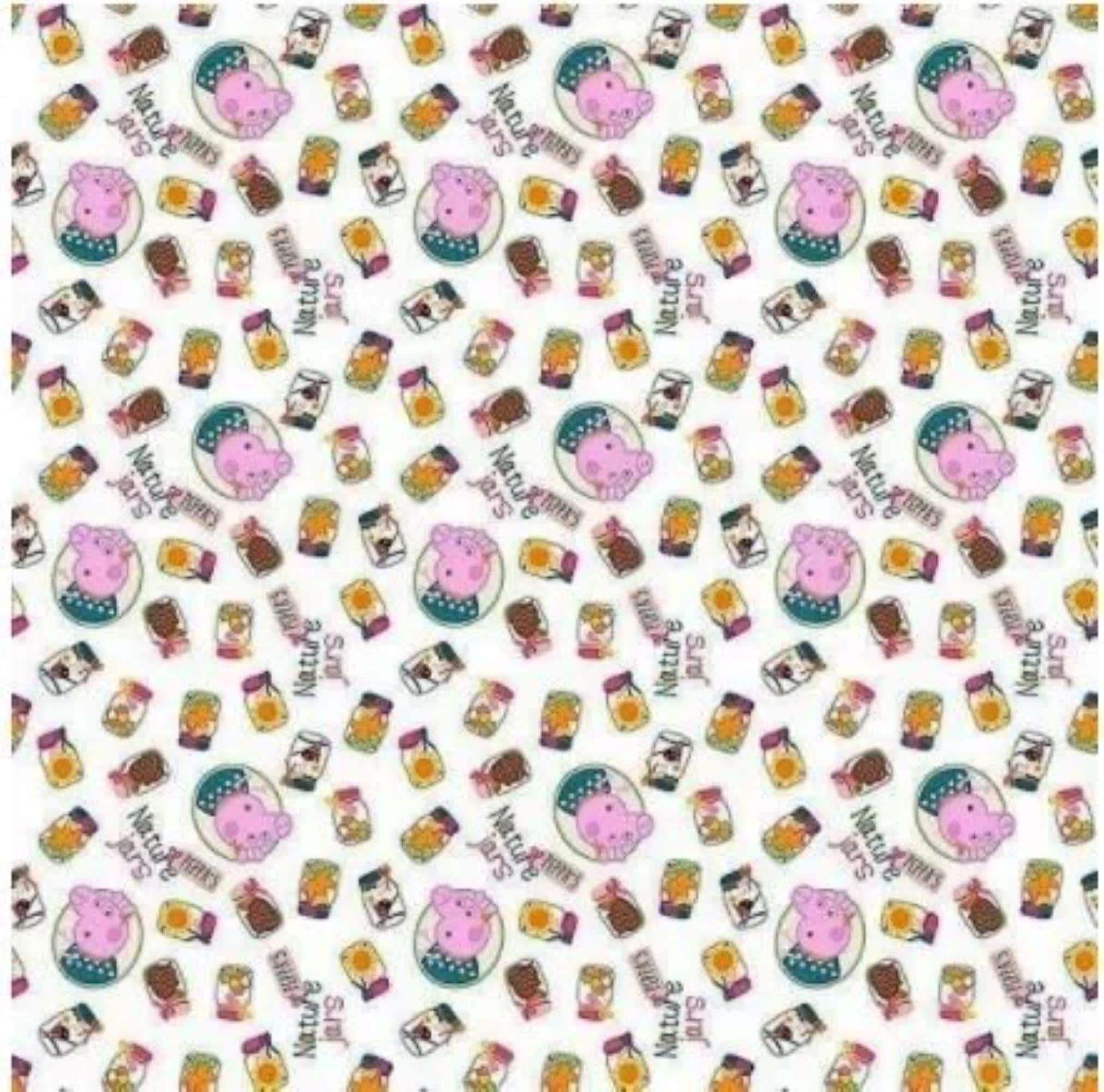 Make sewing fun with this Nickelodeon Peppa Pig Nature Jars 100% Cotton Fabric by Springs Creative. Featuring Peppa Pig surrounded by nature-themed jars and playful designs, this officially licensed fabric is perfect for children’s quilts, apparel accents, décor, and crafts.