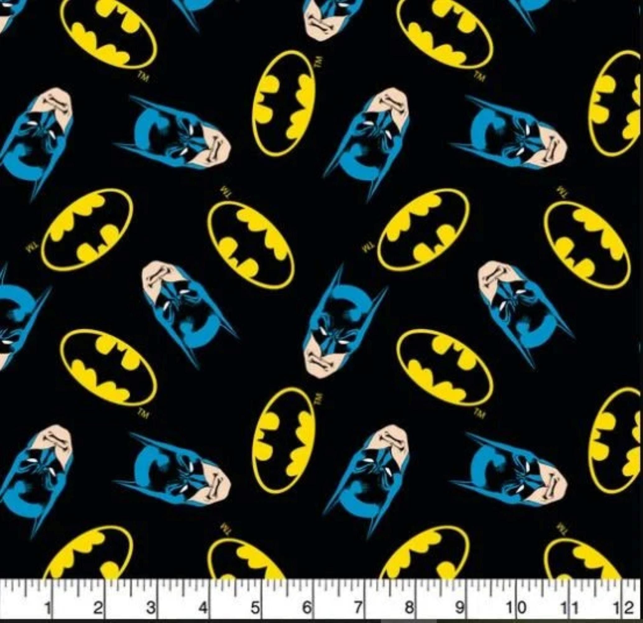 Bring Gotham style to your sewing with this DC Comics Batman Head and Logo 100% Cotton Fabric by Camelot. This officially licensed fabric features the classic Batman head and logo design, making it perfect for quilts, décor, apparel accents, kids’ crafts, and handmade gifts.