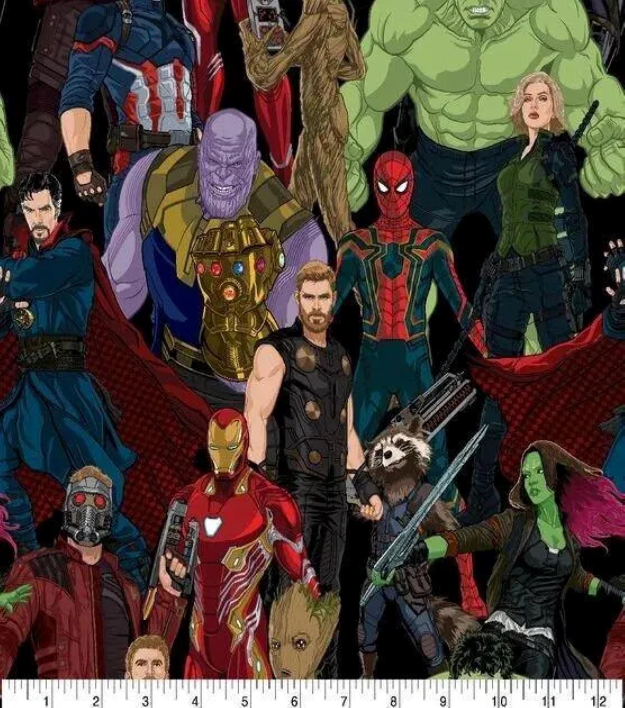 Bring superhero action to your projects with this Marvel Avengers Infinity War 100% Cotton Fabric. This officially licensed Marvel fabric features Avengers heroes like Iron Man, Captain America, Thor, Hulk, and more in a bold Infinity War design. Perfect for quilting, crafts, décor, and apparel accents.