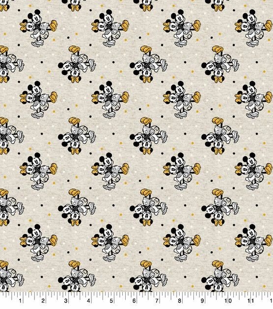 Disney Mickey and Minnie Together Cotton Fabric Fat Quarter-18"x21"Half Yard-18"x43"1 Yard-36"x44"; sold in one continuous piece.Content: 100% CottonCare: Machine wash gentle cold, non-chlorine bleach, tumble dry low, cool iron.Condition: New