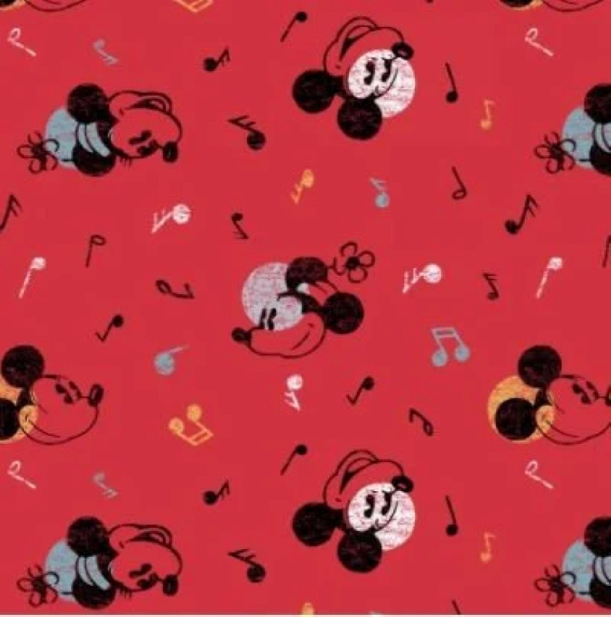 Celebrate classic Disney style with this Disney Mickey and Minnie Vintage Mouse Music & Scattered 100% Cotton Fabric. This officially licensed Disney fabric features Mickey Mouse and Minnie Mouse in vintage-inspired designs with scattered accents and musical details, making it perfect for quilts, apparel accents, décor, and crafts.