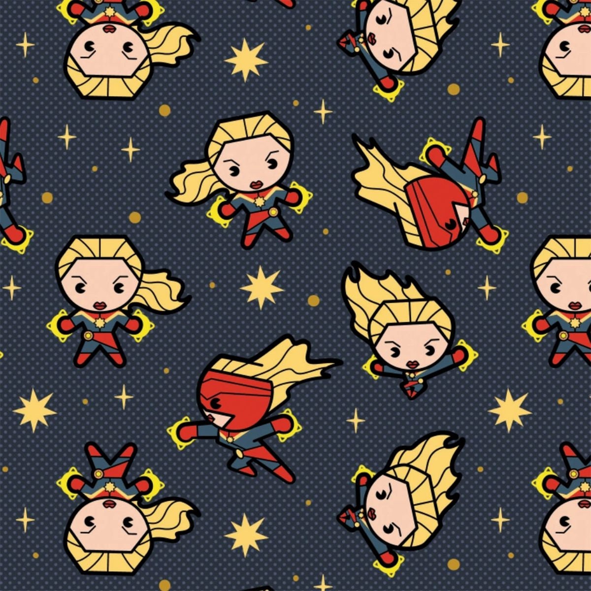 Captain Marvel Cotton Fabric-Kawaii 100% CottonFat Quarter -18"x22"Half Yard - 18" x 44"1 Yard - 36"x 44" Sold by the yard; continuous cutContent: 100% CottonVendor: CamelotCare: Machine wash gentle cold, non-chlorine bleach, tumble dry low, warm iron.