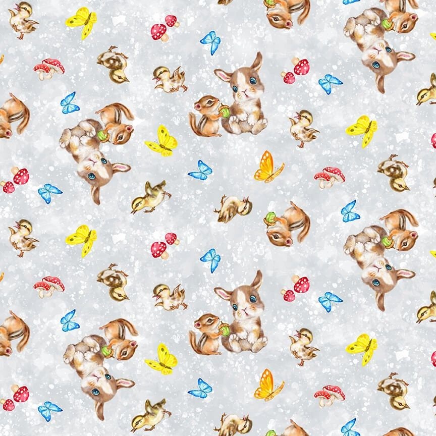 Bunny Meadows Digital Fabric Grey 100% CottonFat Quarter-18"x21"Half Yard-18"x43"1 Yard-36"x43"