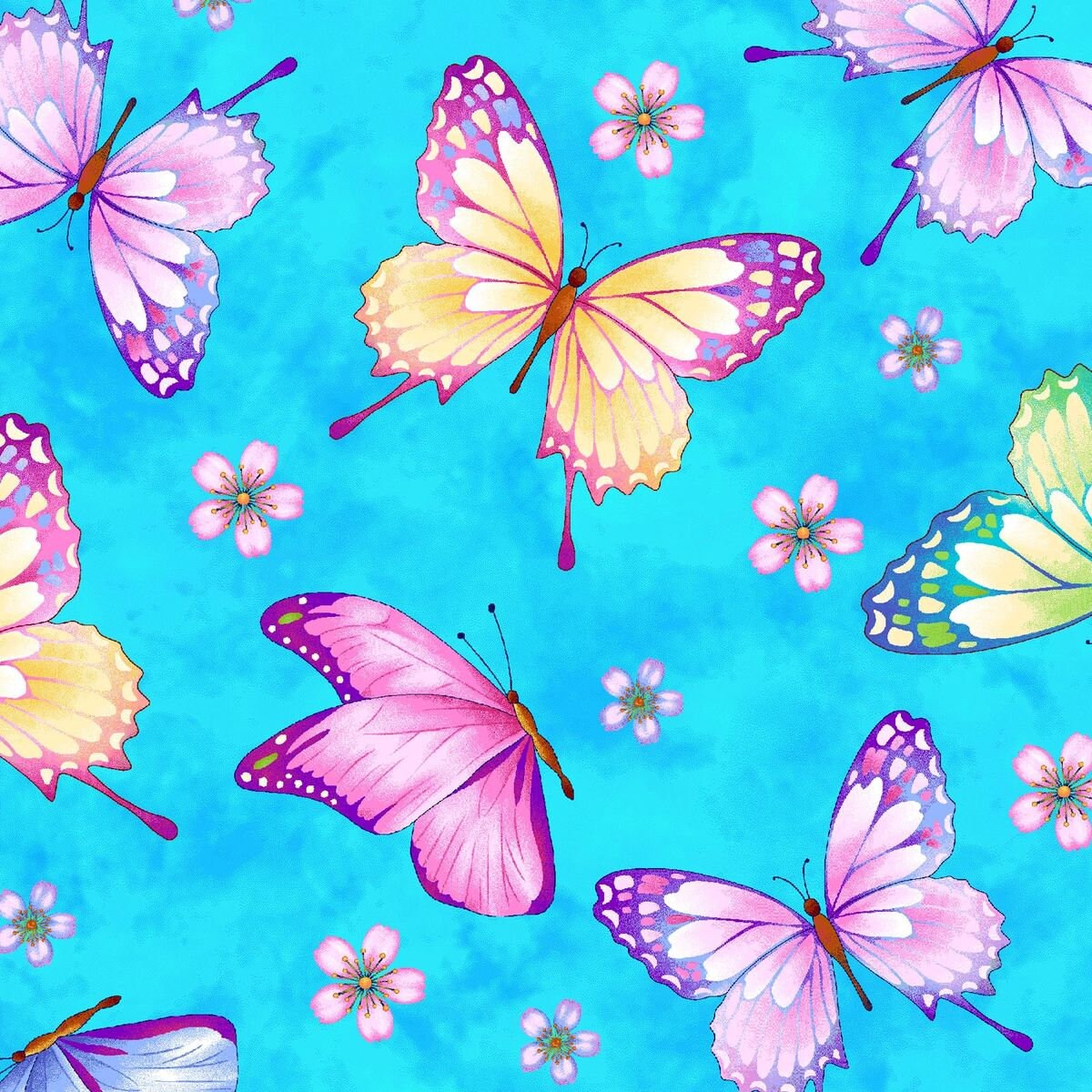 Henry Glass Gossamer Gardens Butterflies on Blue-100% Cotton Fabric Fat Quarter - 18"x 21"Half Yard - 18"x 43"1 Yard-36"x 43"; sold by the yard and cut in one continuous piece.Vendor: Henry GlassContent: 100 % CottonCare: Machine wash gentle warm, non-chlorine bleach, tumble dry low.Condition: New